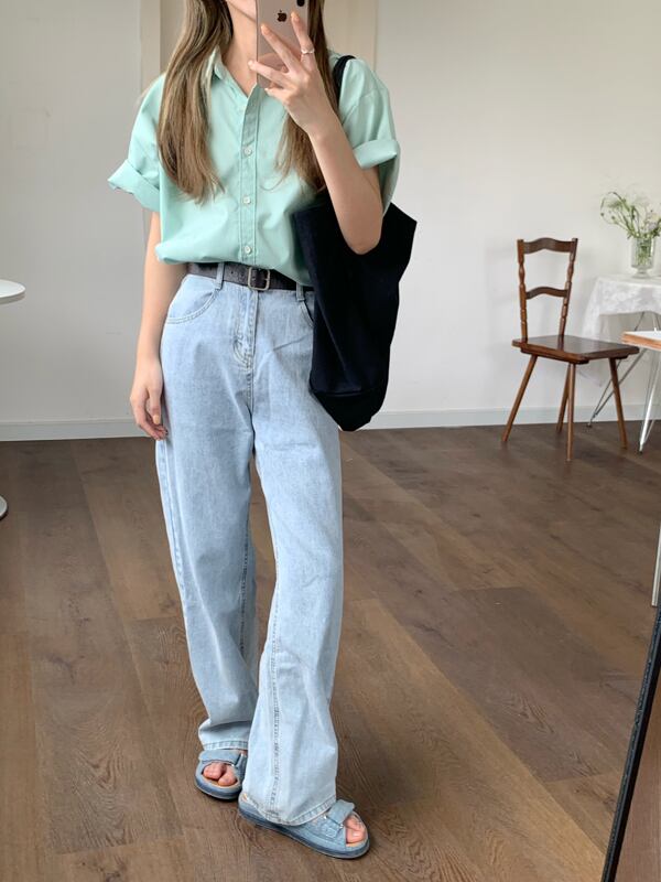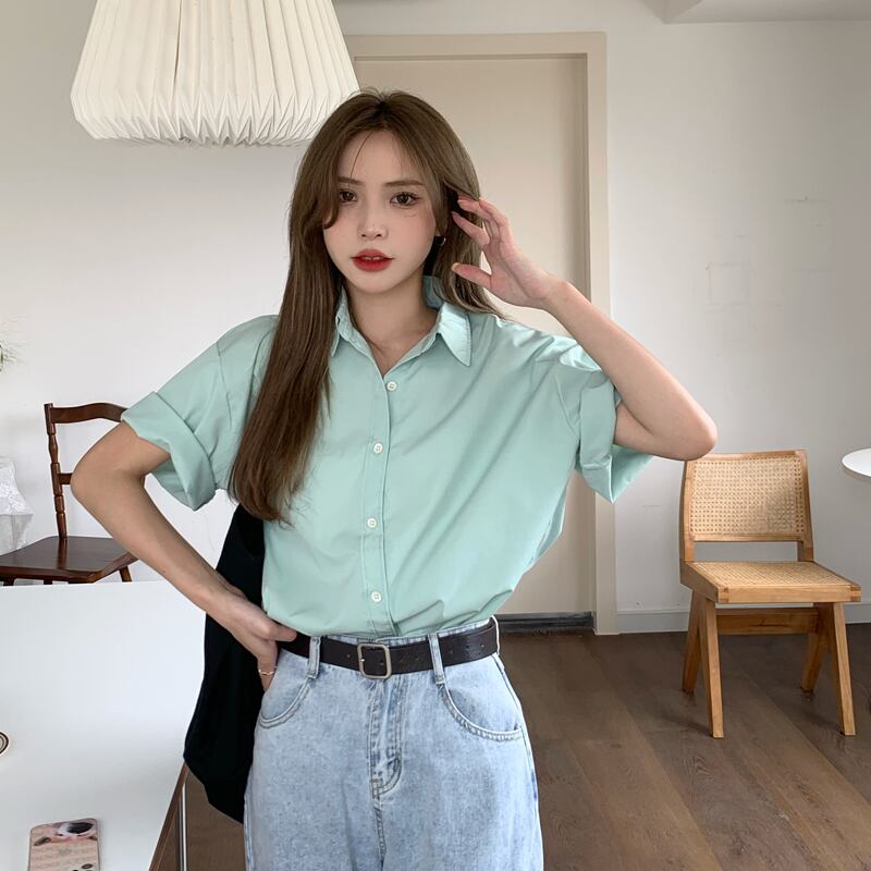 グリーンシャツ サマー薄手スタイルトップス 夏物 スーパーモール47492542686