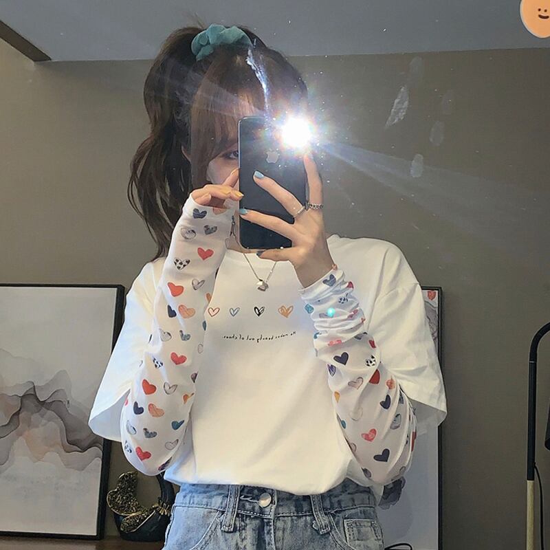 メッシュトップス スプリングオータムホワイトTシャツ ロング 春物 秋物 ステッチ スーパーモール80103478231