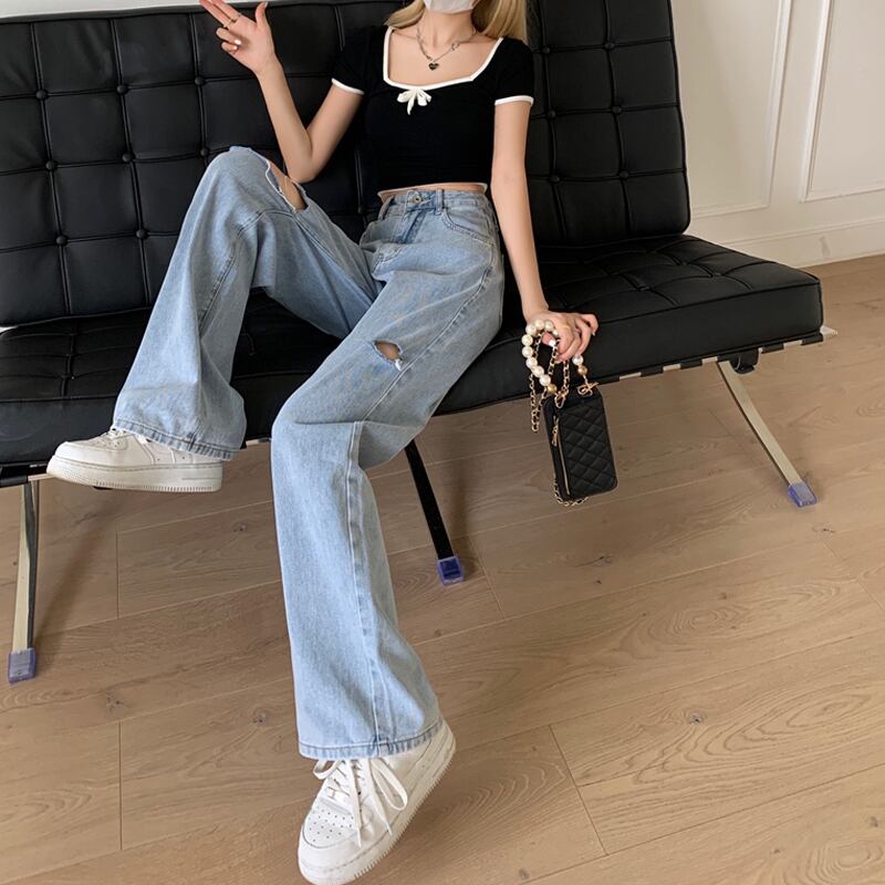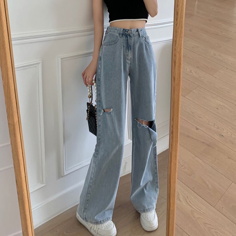 ジーンズ スプリングオータム薄手ハイウェストパンツ ルーズ 春物 秋物 スーパーモール11136875893