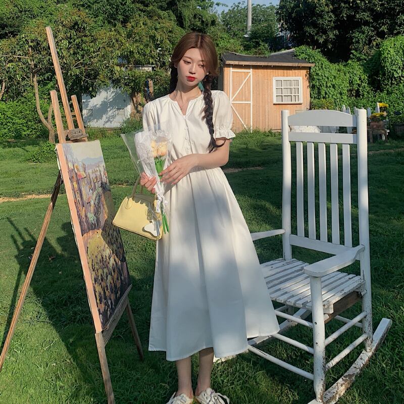 スリーブホワイトドレス サマーウェスト薄手スタイルロングスカート 夏物 スーパーモール55231790395