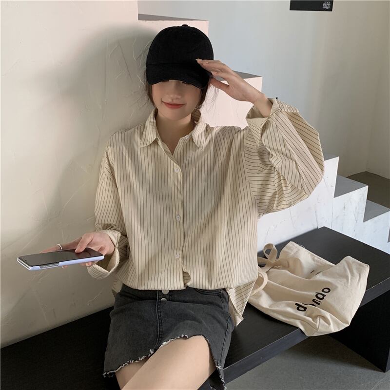 ストライプシャツ スプリングオータムトップス ロング 春物 秋物 スーパーモール33913231157
