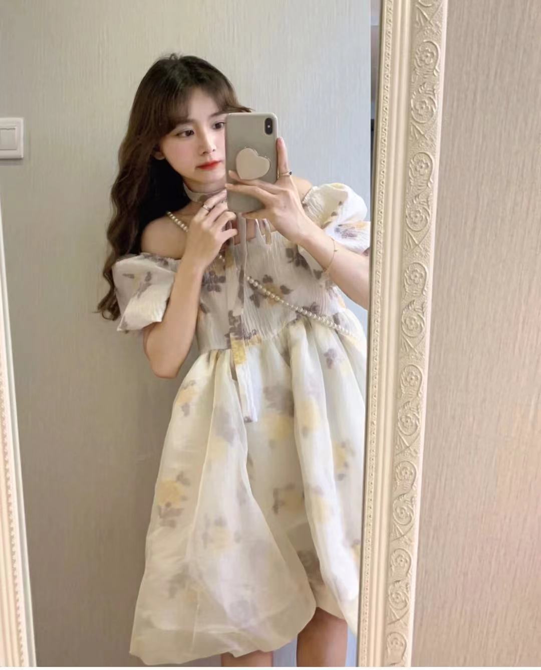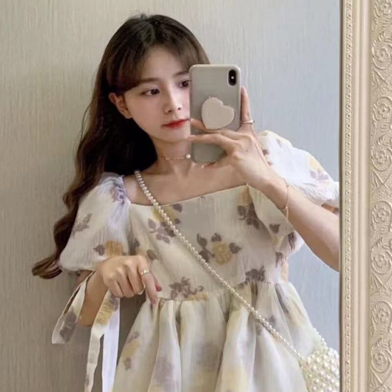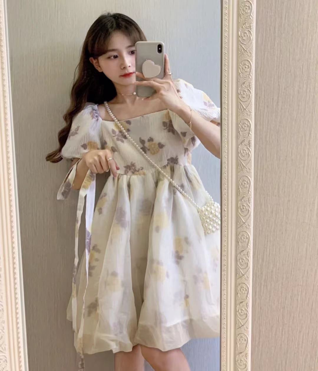 スリーブフローラルドレス サマースカート 夏物 花柄 スーパーモール80916048661