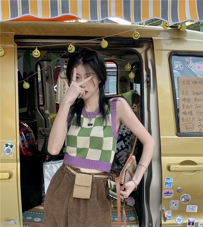 Vネックニットレディースサマーレッドスタイルトップス ノースリーブ 大人ガーリー スウィート キュート カジュアル 夏物 スーパーモール79540768642