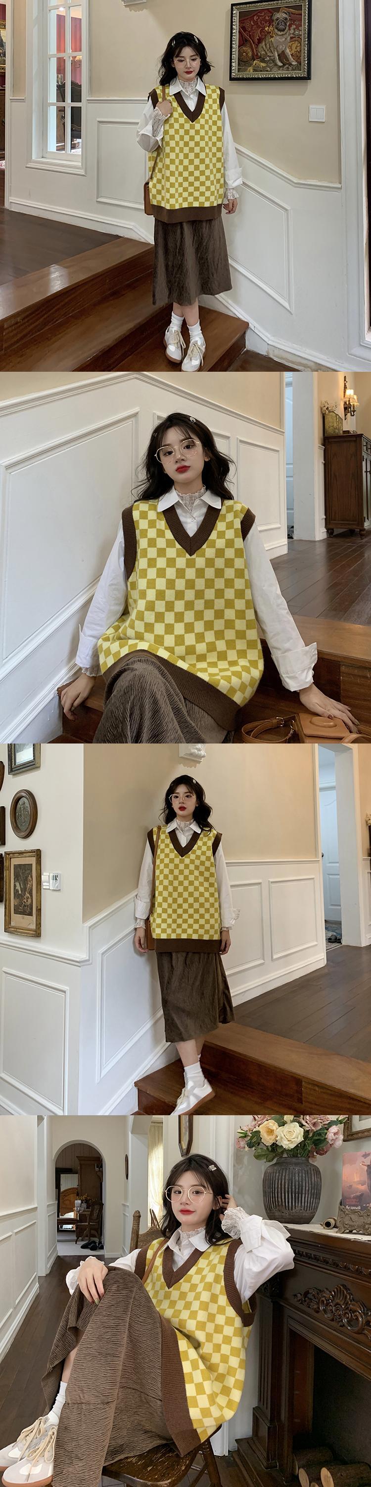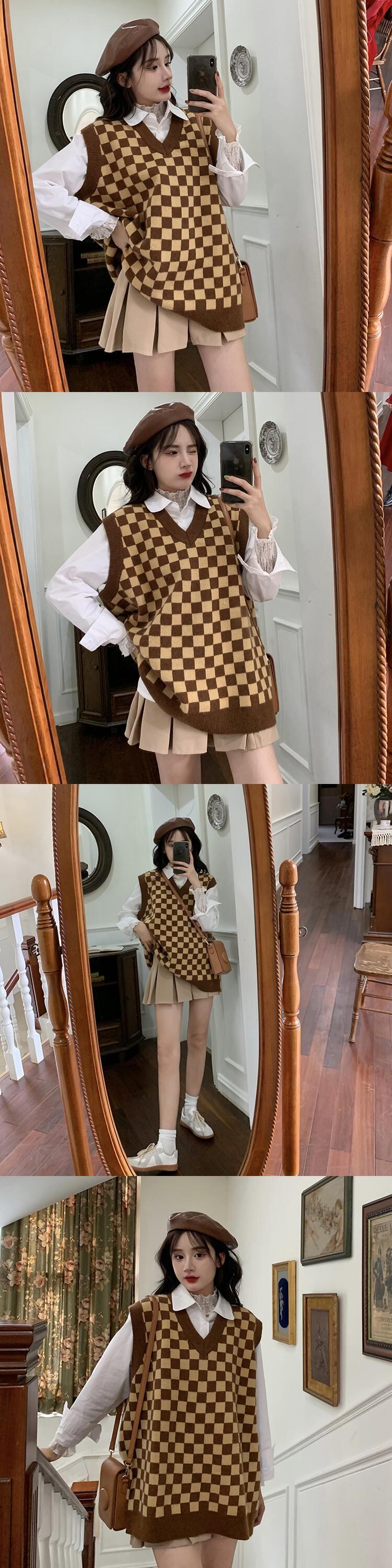 格子柄ニットスプリングオータムスタイルセーター レッド 春物 秋物 スーパーモール48442294535