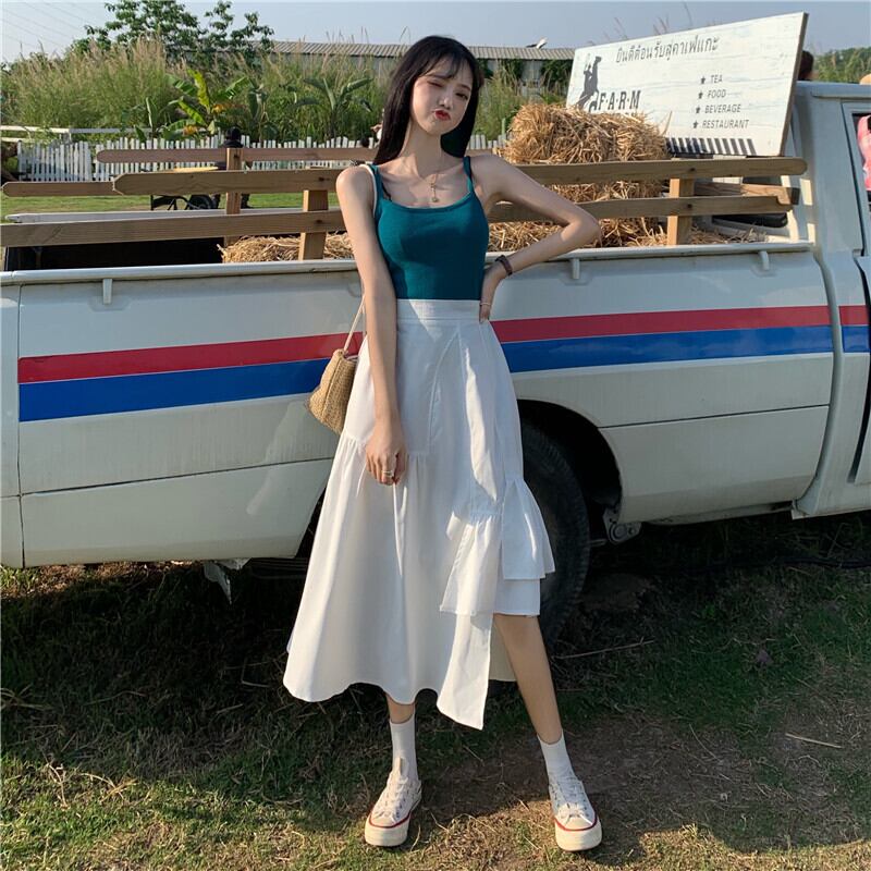 ホワイトスカート スプリングサマーハイウェスト薄手Aライン 春物 夏物 スーパーモール30152879059
