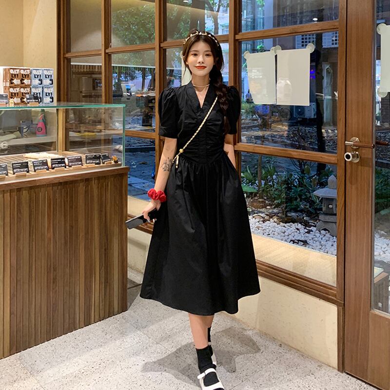 Vネックスリーブ格子柄ドレス サマーロングスカート 夏物 スーパーモール30697097573