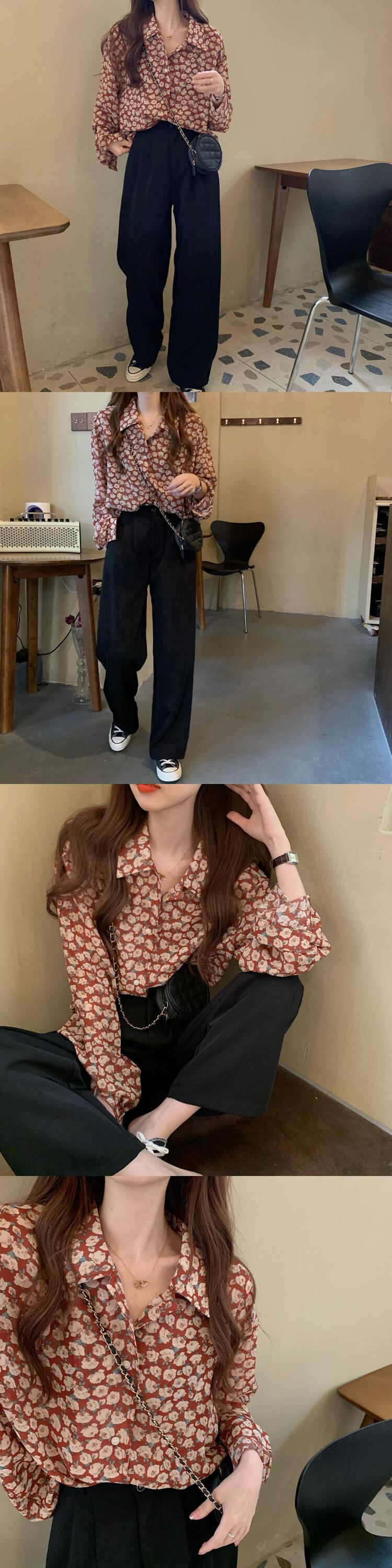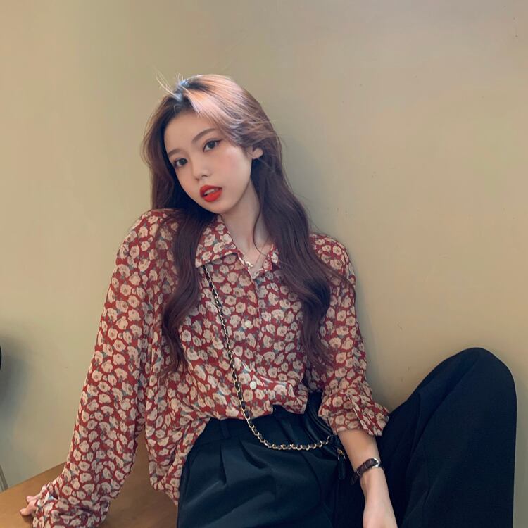 フローラルシャツ スプリングオータムスタンダードスタイルブラウス ロング レトロ 春物 秋物 花柄 スーパーモール73155869244
