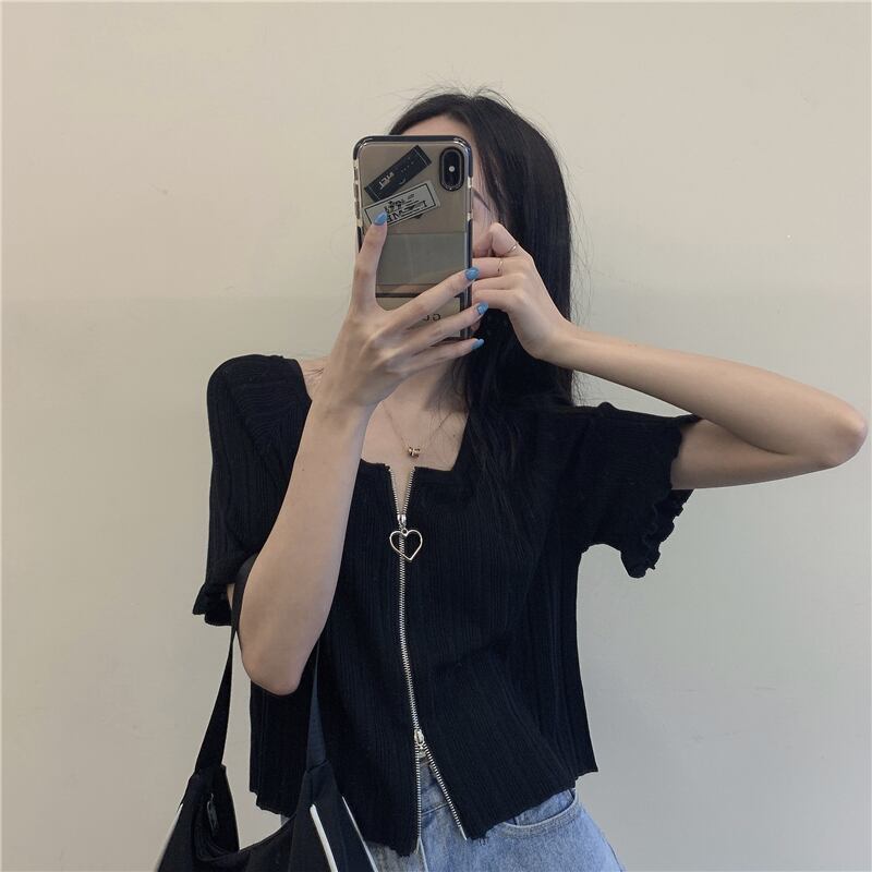 ブラックショートTシャツ サマースタイルルーズニットトップス 夏物 スーパーモール85196534355
