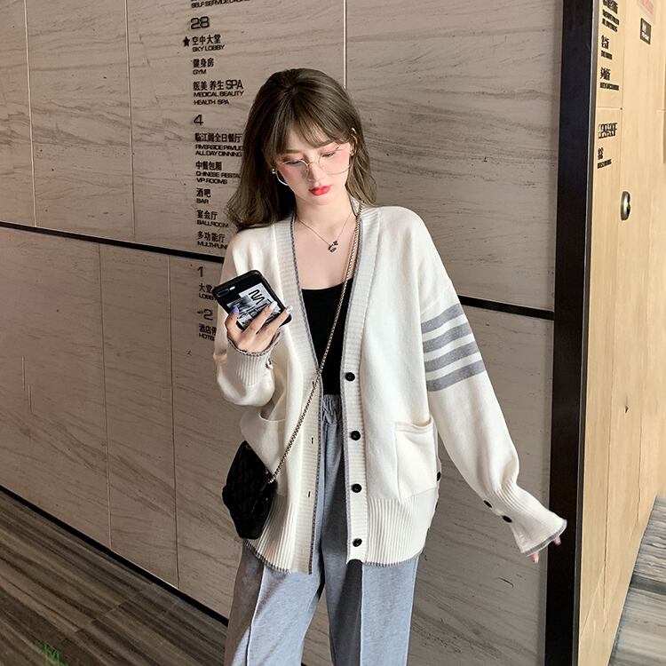 セーター ジャケット スプリングオータムスタイルルーズVネックニットカーディガントップス 春物 秋物 スーパーモール53786014010