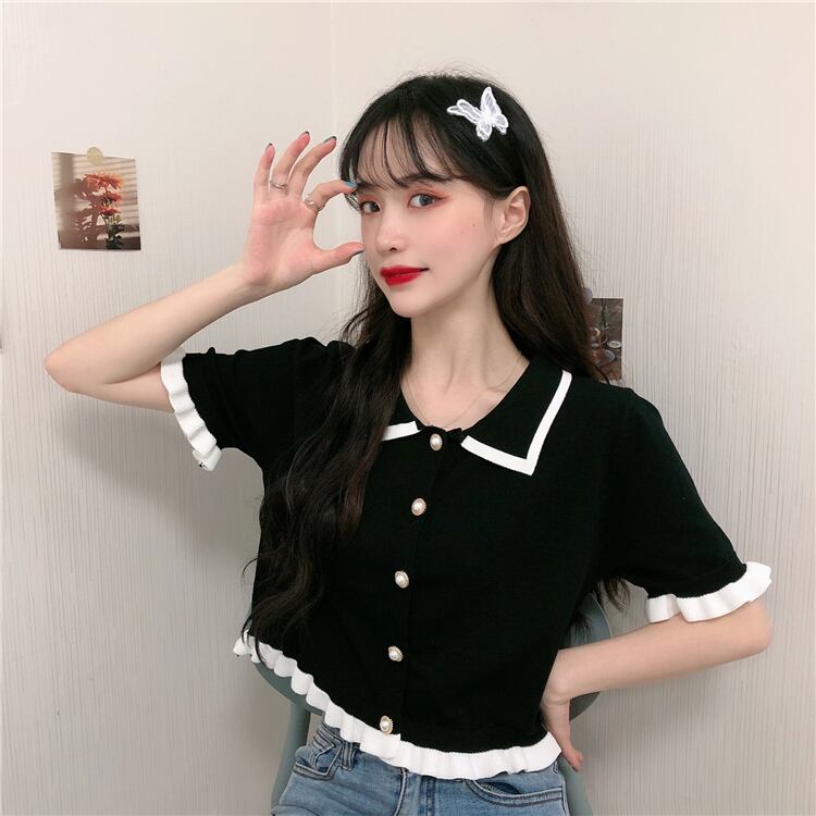 ショートニットトップス サマールーズブラックTシャツ 夏物 スーパーモール44244446258