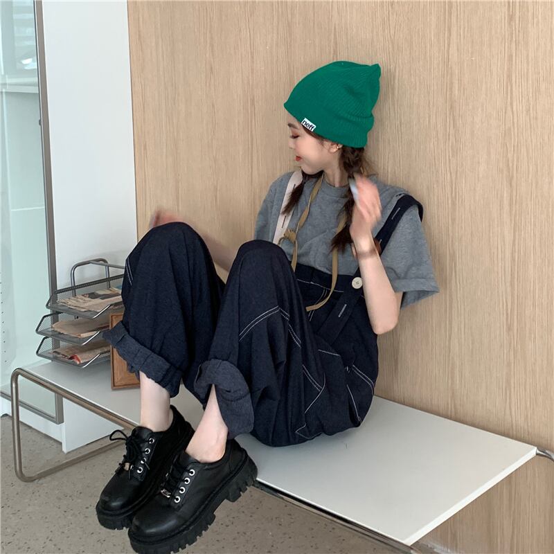 スタンダードハイウェストウェストオーバーオール ルーズサマーワイドレッグパンツ レトロ 夏物 ワイドパンツ スーパーモール46424769796