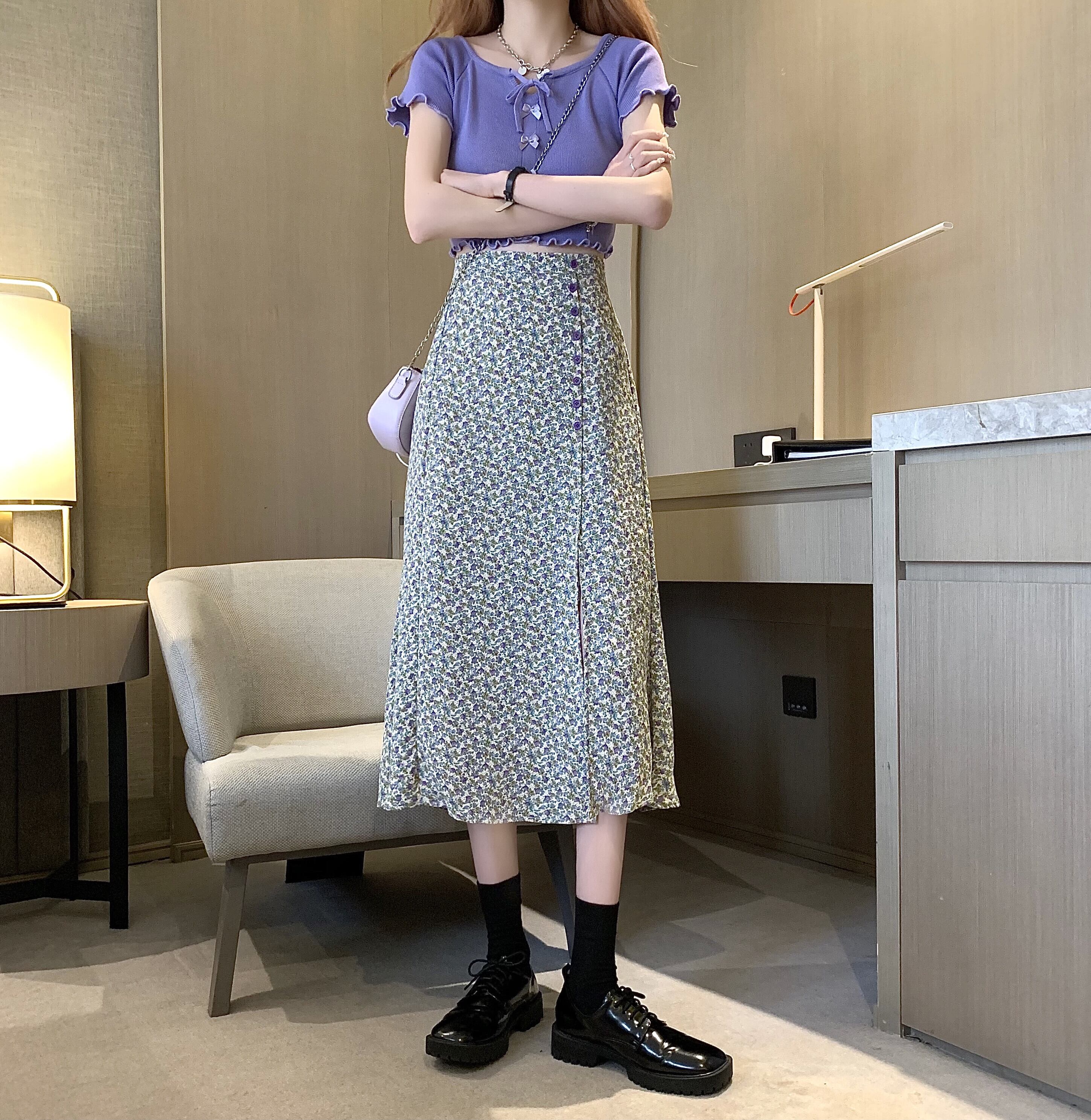 サマーフローラルAラインスカート スリットハイウェストウェストシフォンロング 夏物 花柄 スーパーモール50186075135