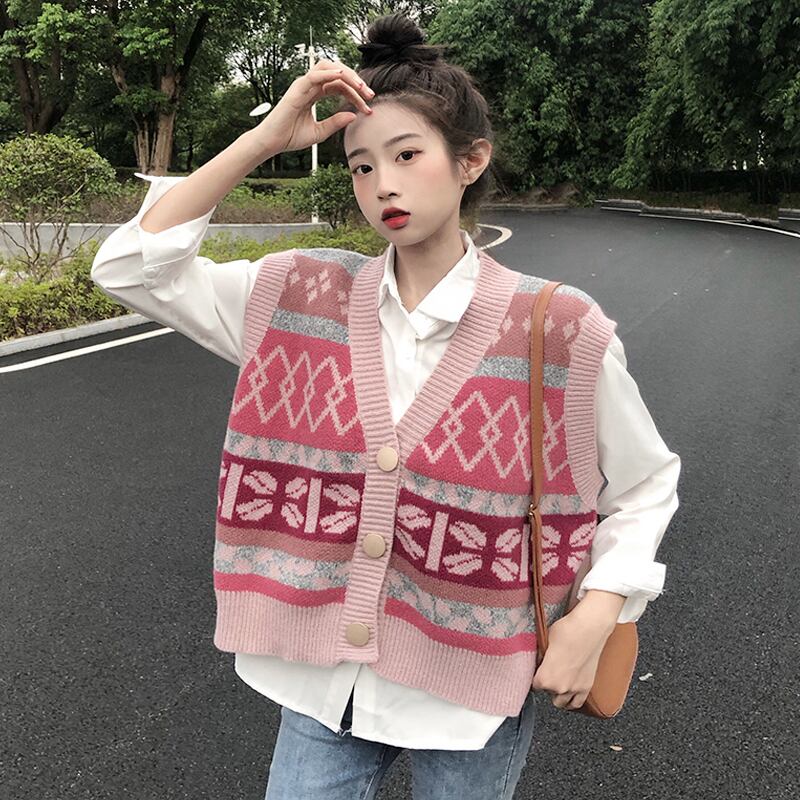 Vネックニットスプリングオータムセーター レッド 春物 秋物 スーパーモール14616514320