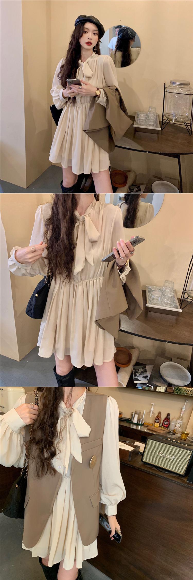色:ベストブラックシングルピース,ベストカーキ一枚,白いワンピースのワンピース,ワンピースアプリコットドレス