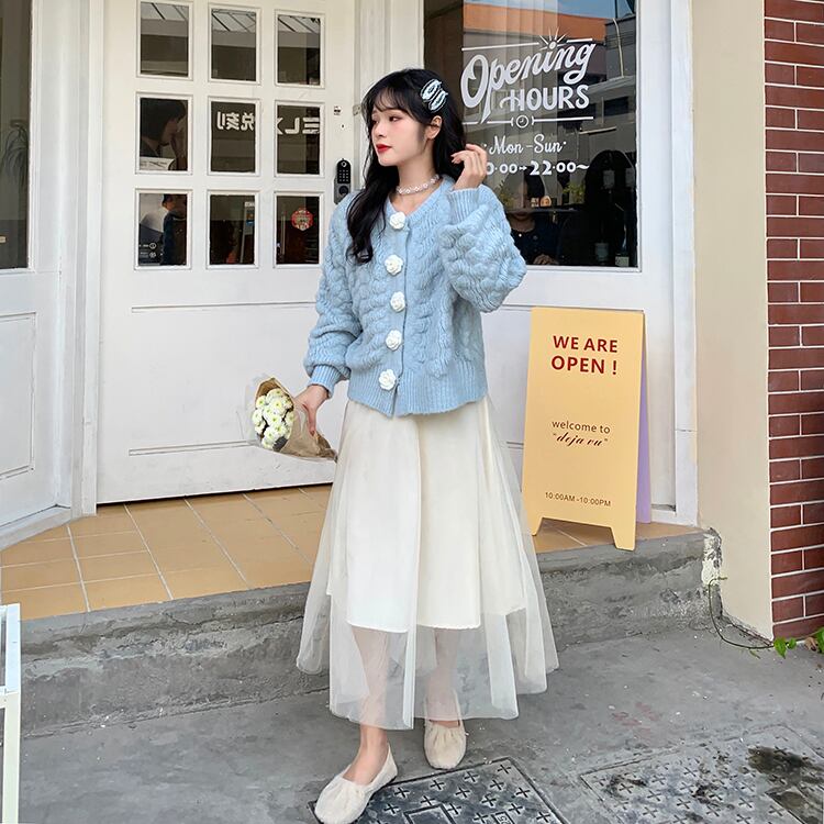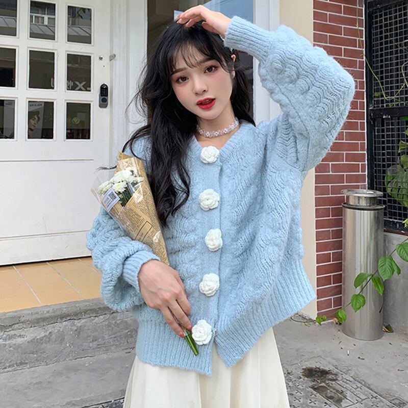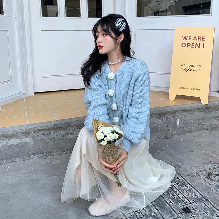ブルーセーター コート スプリングオータムウィンタースタイルショートニットカーディガン 春物 秋物 冬物 スーパーモール3222163916