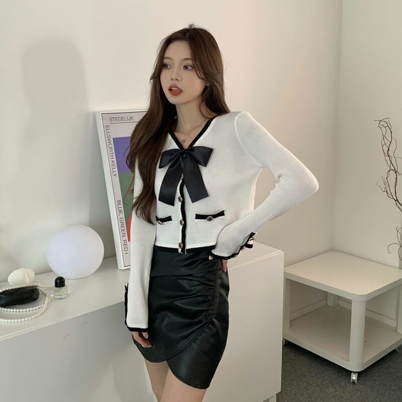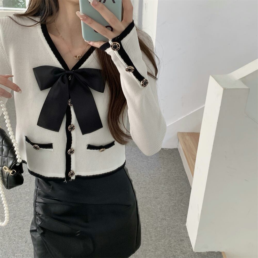 ブラックニットカーディガンスプリングオータムウィンターセーター コート ショートトップス 春物 秋物 冬物 スーパーモール46892615745