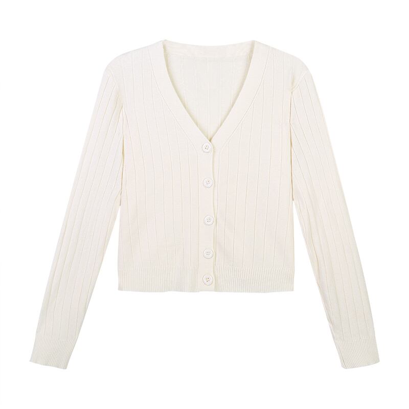 Vネックセーター スプリングオータムルーズ薄手カーディガンジャケット ショートトップス ロング 春物 秋物 スーパーモール30975025796
