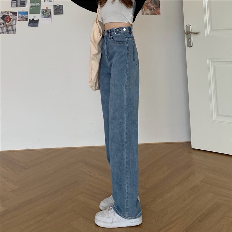 スプリングオータムハイウェストジーンズ ルーズパンツ 春物 秋物 スーパーモール53437647544
