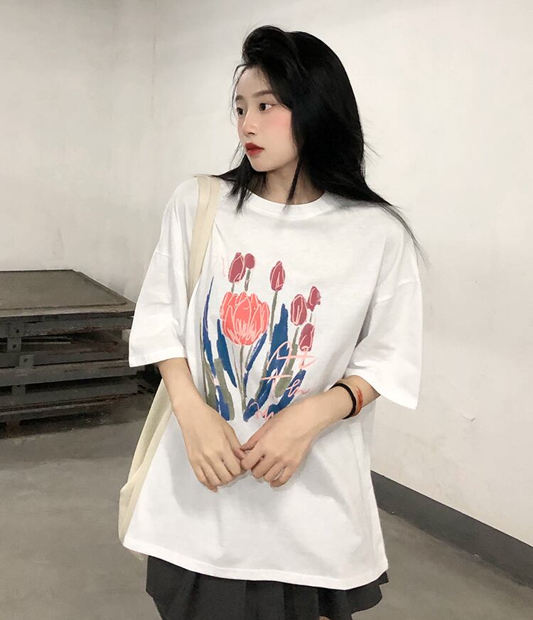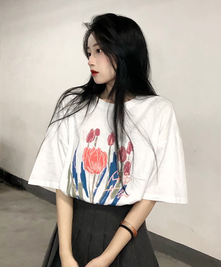 色:白い花柄Tシャツ,ブラックフローラルTシャツ