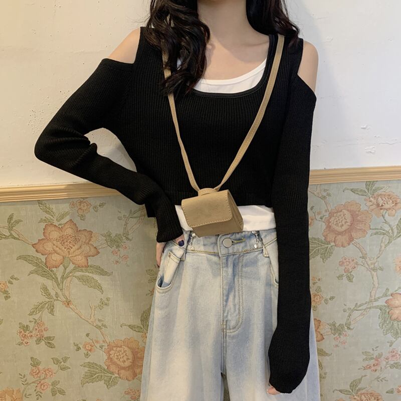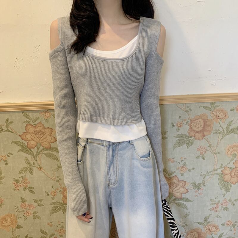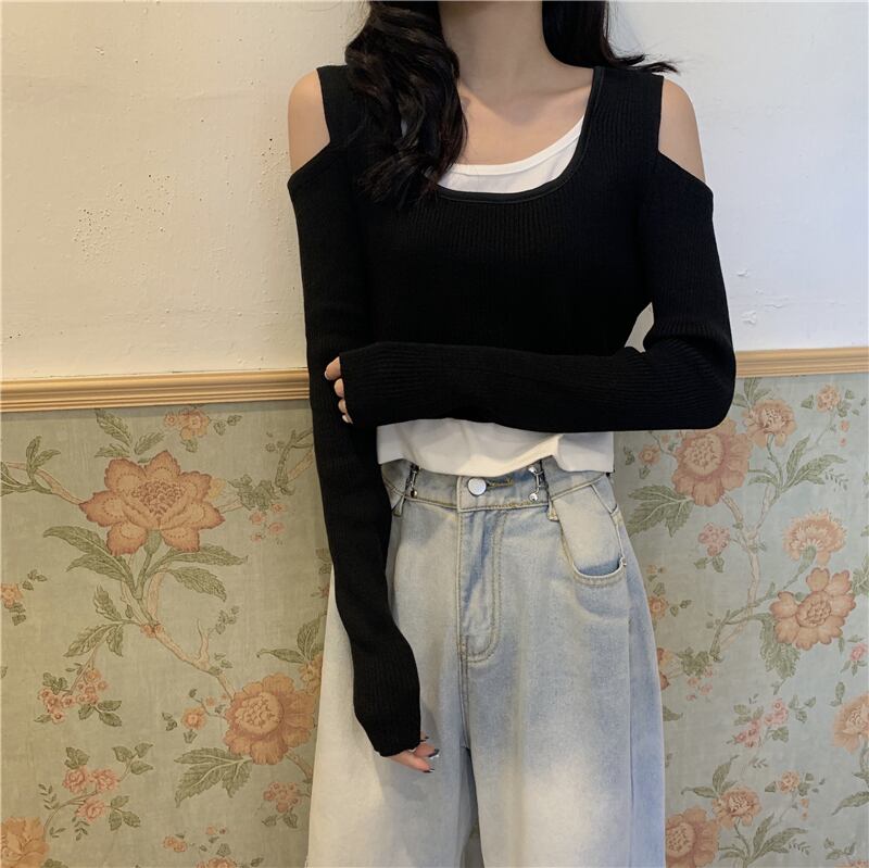 ストラップレスセーター スプリングオータムスリムシャツ ショート 春物 秋物 スーパーモール68146253474