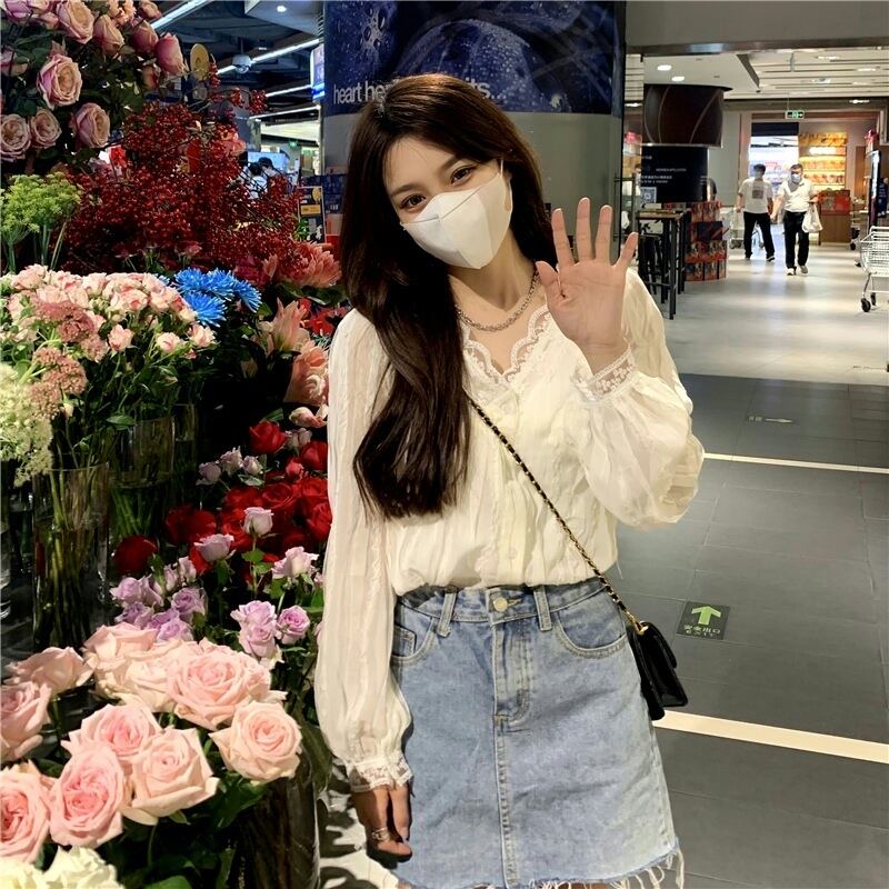 スプリングオータムショートレースブラウス スタイルシャツ 春物 秋物 スーパーモール19518117911