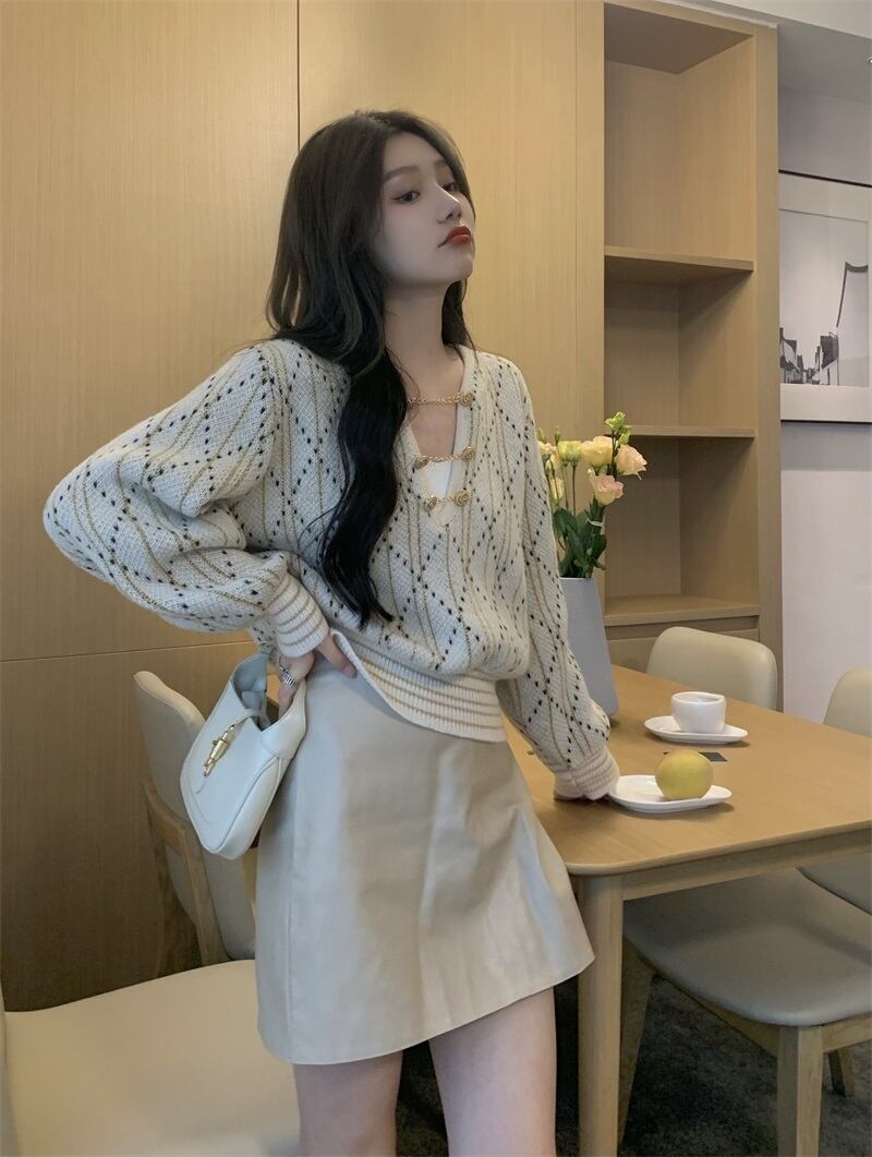 Vネックセーター スプリングオータムスタイルルーズショートニット 春物 秋物 スーパーモール76647286763