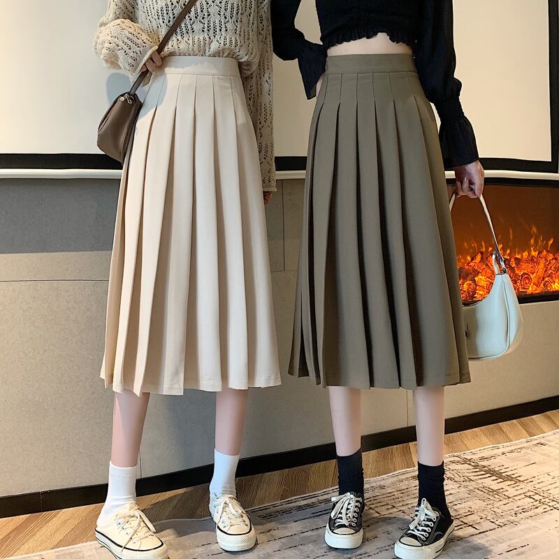 ブラックプリーツスプリングオータムハイウェストAライン 春物 秋物 スカート スーパーモール29123255872