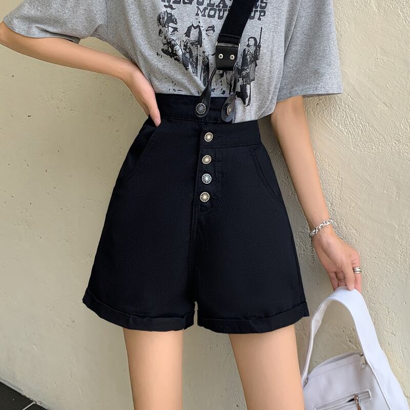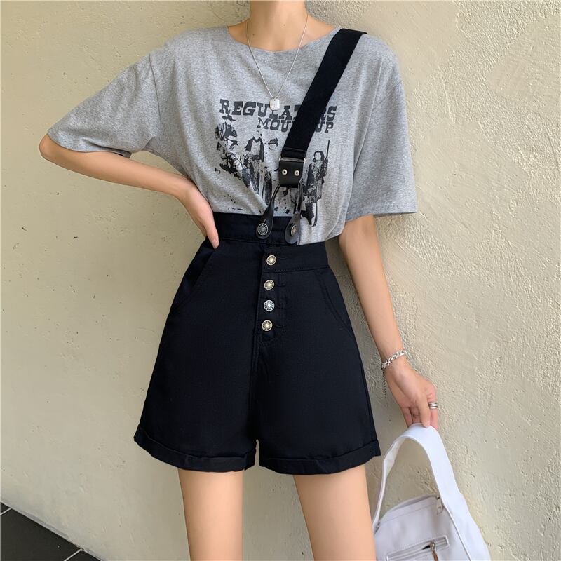 ブラックオーバーオール ショーツ レディースサマー薄手ウェストルーズAラインパンツ 夏物 ブルマー スーパーモール25040912679