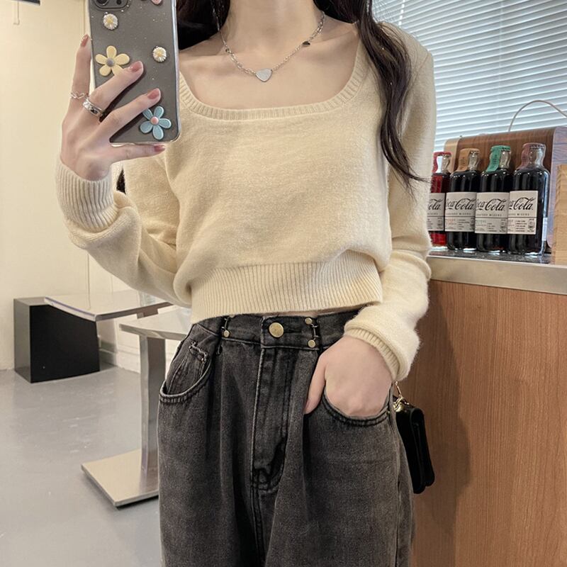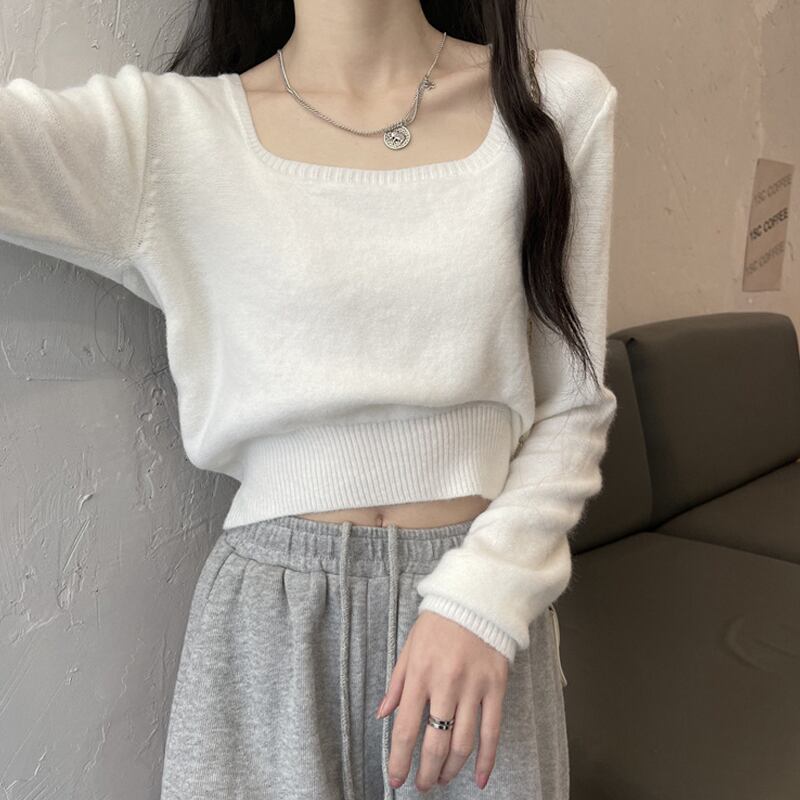 セーター スプリングオータムシャツ スリムショートトップス ロング 春物 秋物 スクウェア スーパーモール82496713040