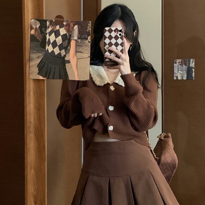 セーター ジャケット スプリングオータムルーズスタンダードスタイルショートニットカーディガン レトロ 春物 秋物 スーパーモール20983425883