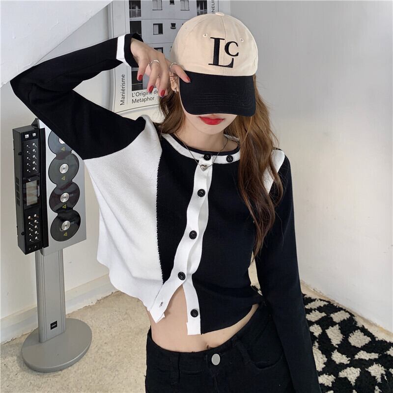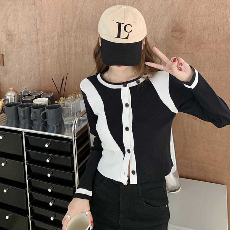 スタンダードニットカーディガンスプリングオータムショートトップス ロング レトロ 春物 秋物 スーパーモール87907991445
