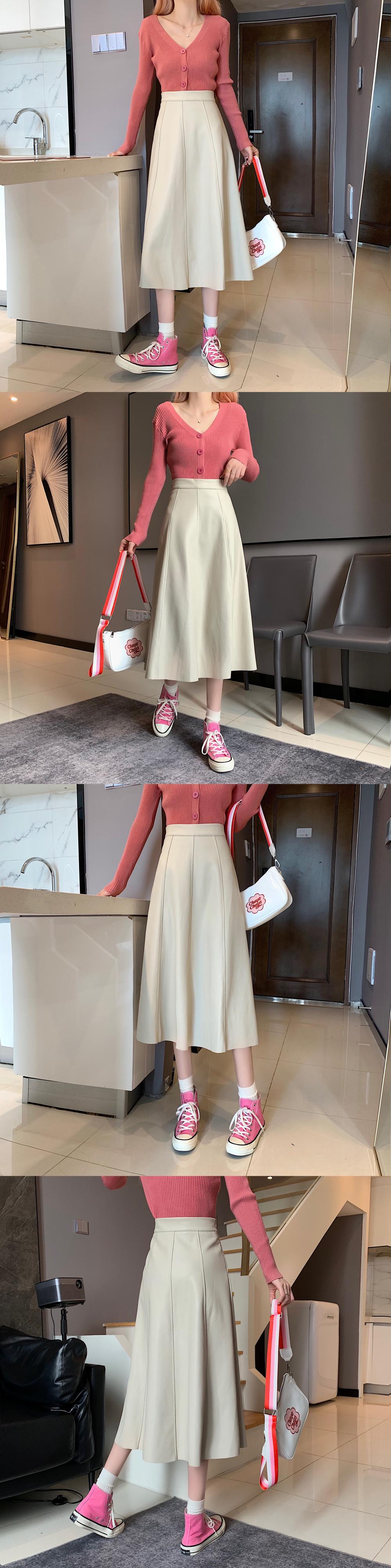 レザースカート スプリングオータムAラインハイウェストロング 春物 秋物 スーパーモール31577544533