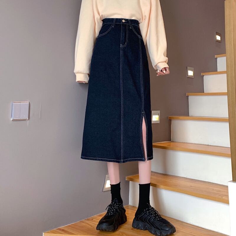 スカート スプリングオータムAラインハイウェスト薄手ロング 春物 秋物 スーパーモール32804857978