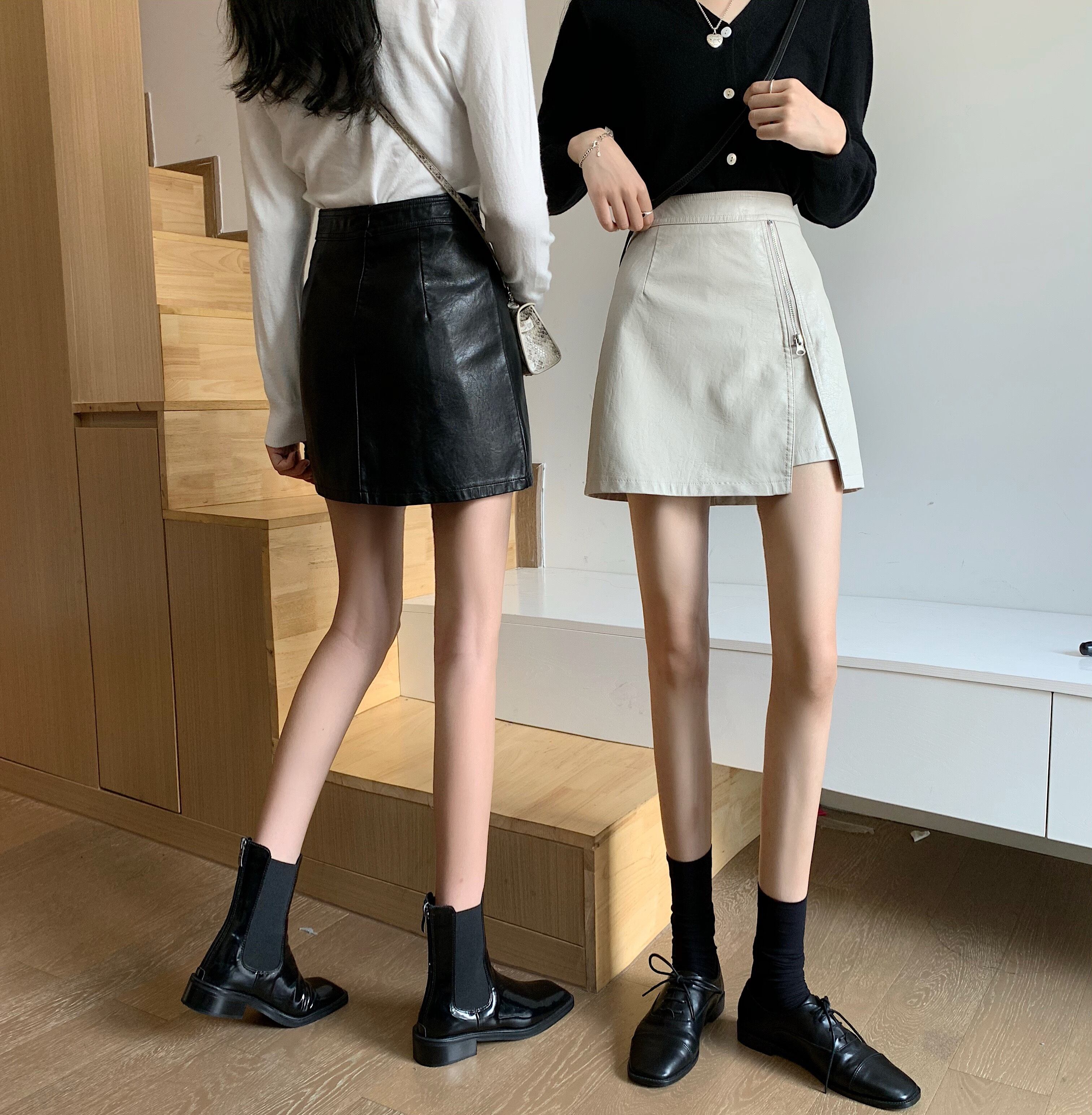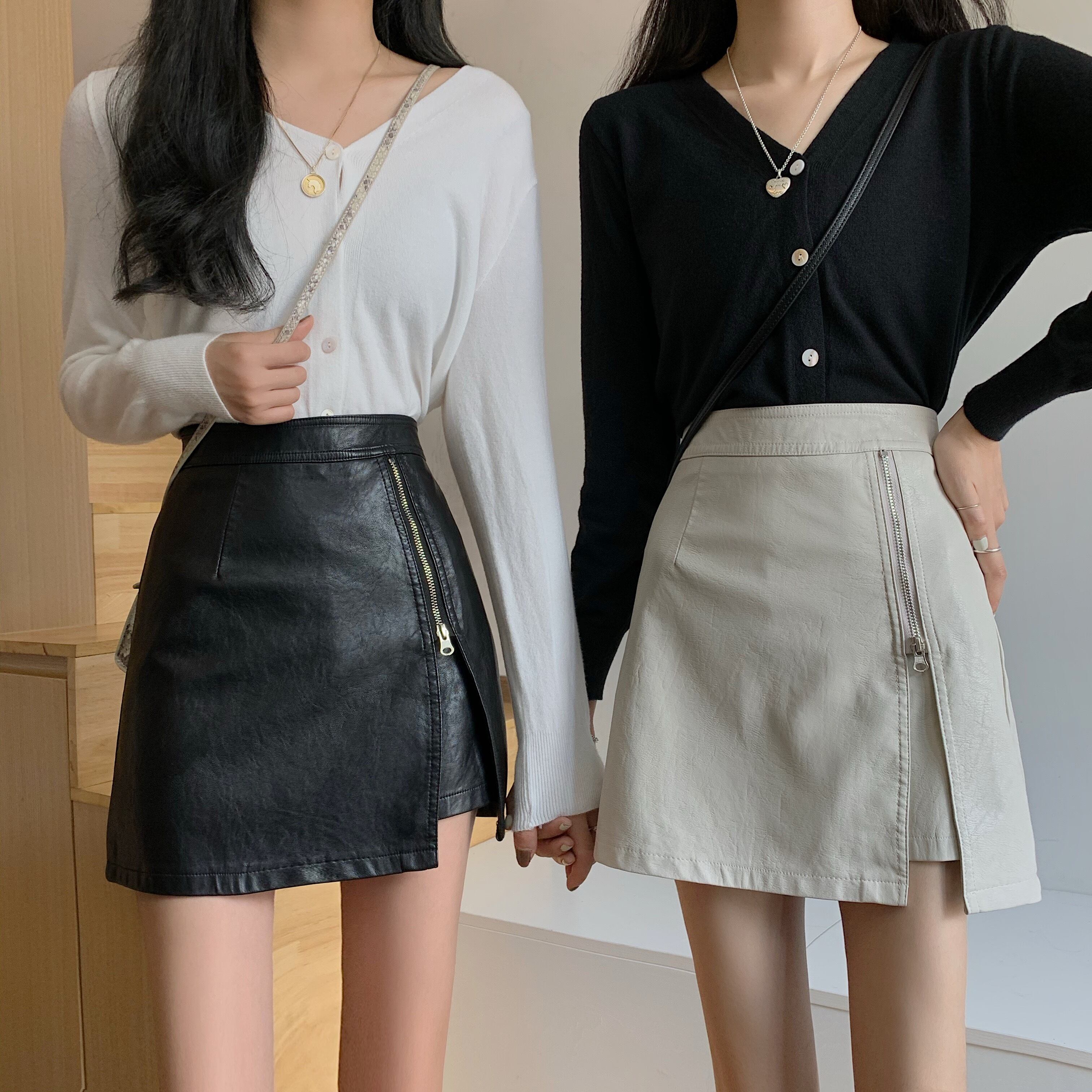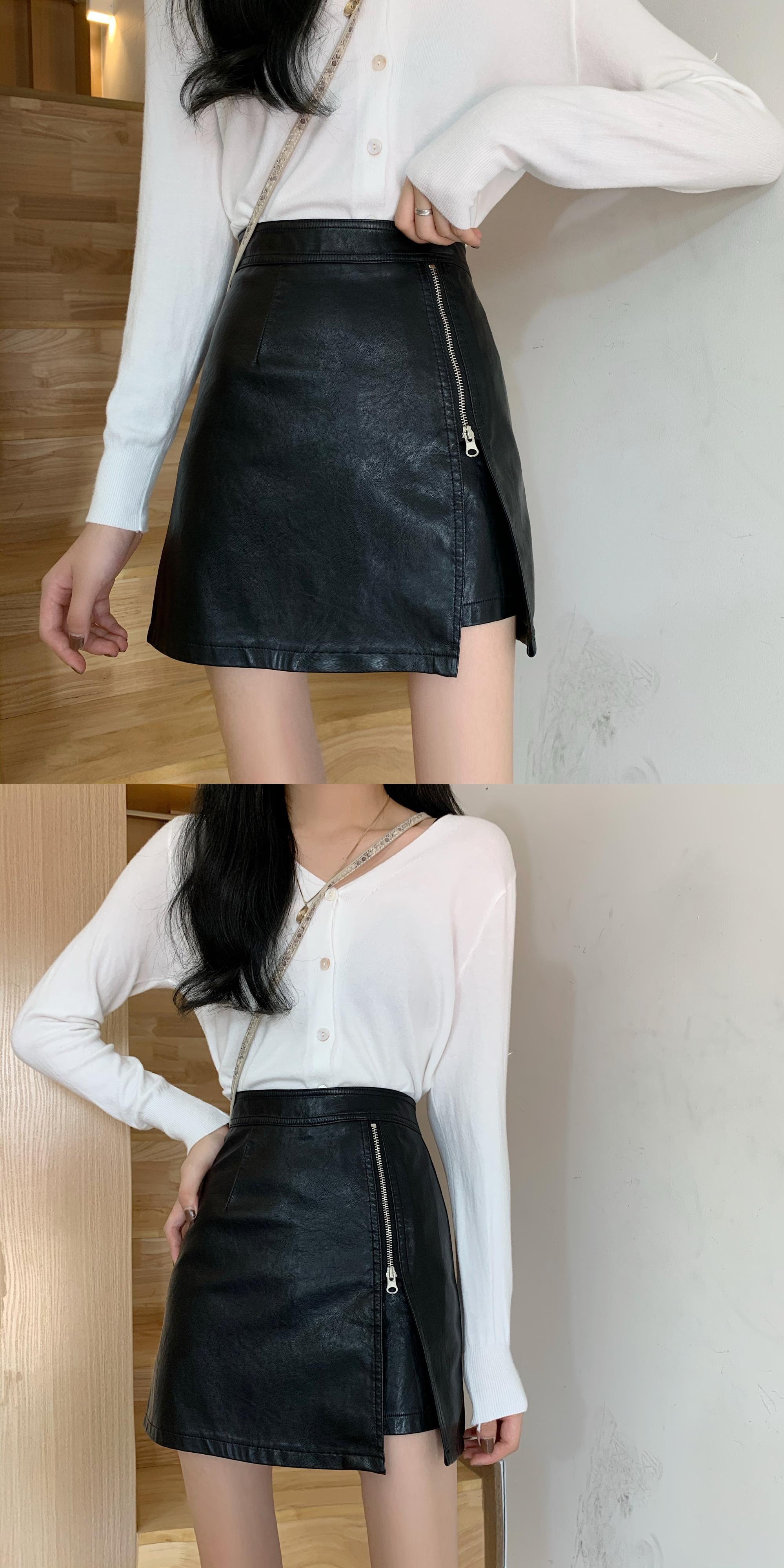 ハイウェストウェストスカート スプリングオータムレザーAラインショート 春物 秋物 スーパーモール6441983301