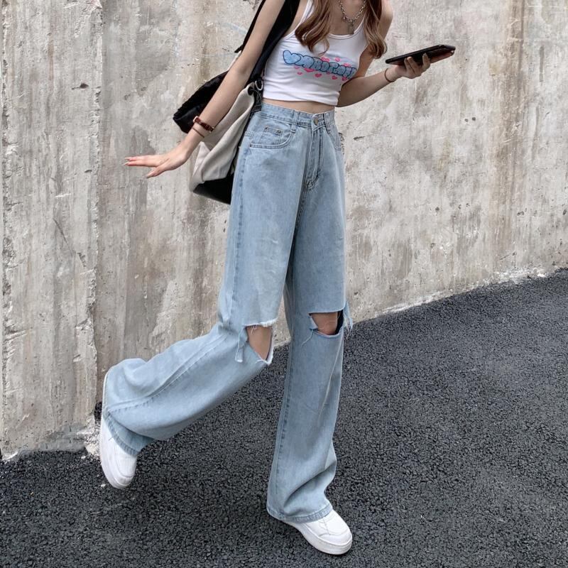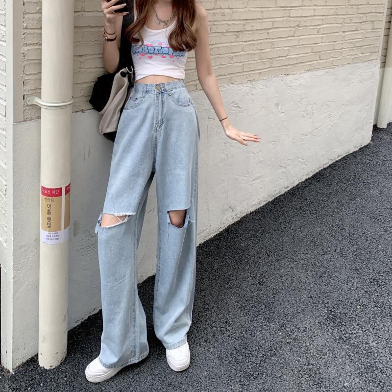 ジーンズ スプリングオータム薄手ハイウェストウェストルーズパンツ ワイドレッグ 春物 秋物 ワイドパンツ スーパーモール41118813018