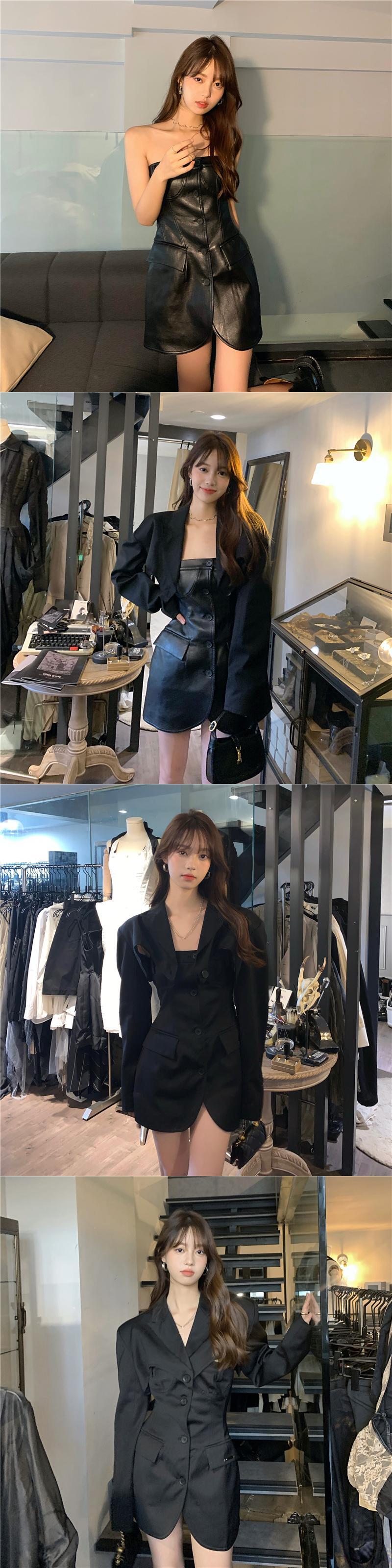 色:黒いスーツのワンピース,レザーチューブトップスカートワンピース,スーツチューブトップスカート一枚