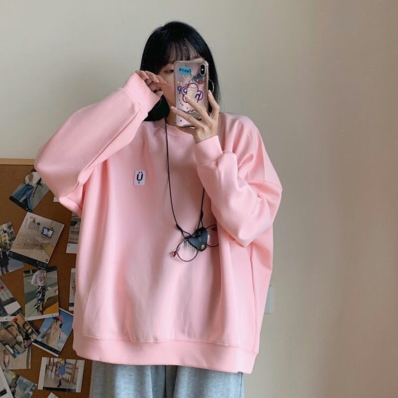 ブルーラウンドネックセーター スプリングオータム薄手ルーズトップス 春物 秋物 Oネック スーパーモール38281092136