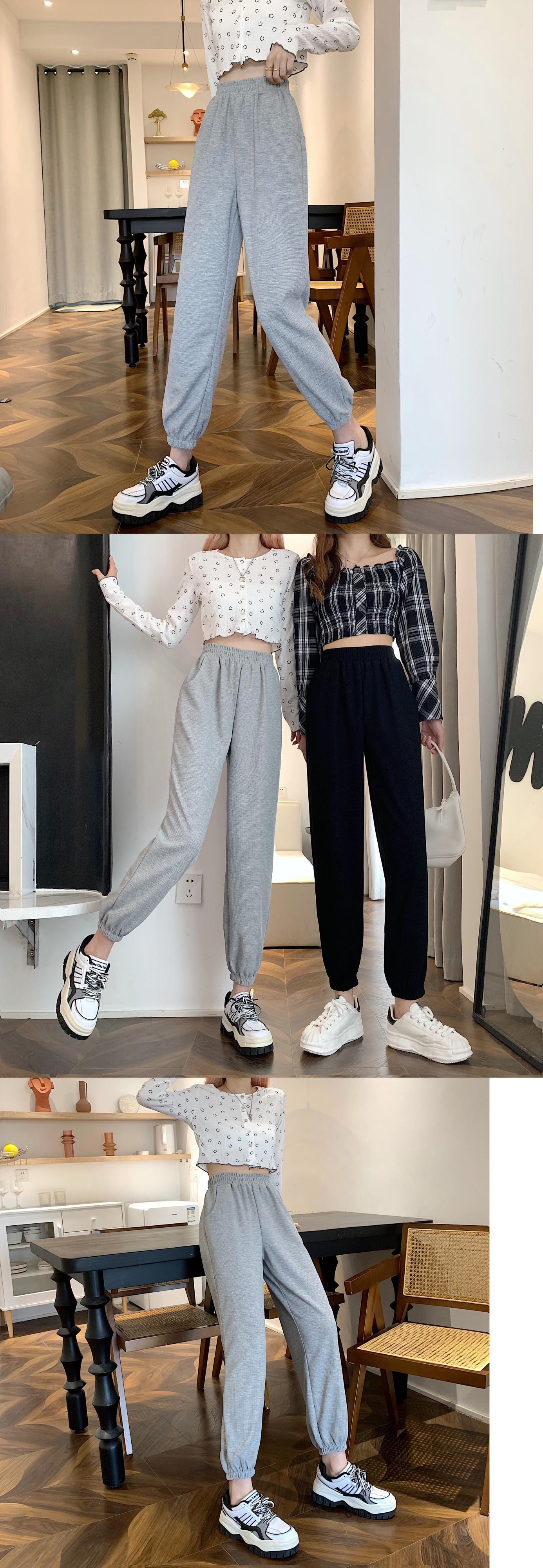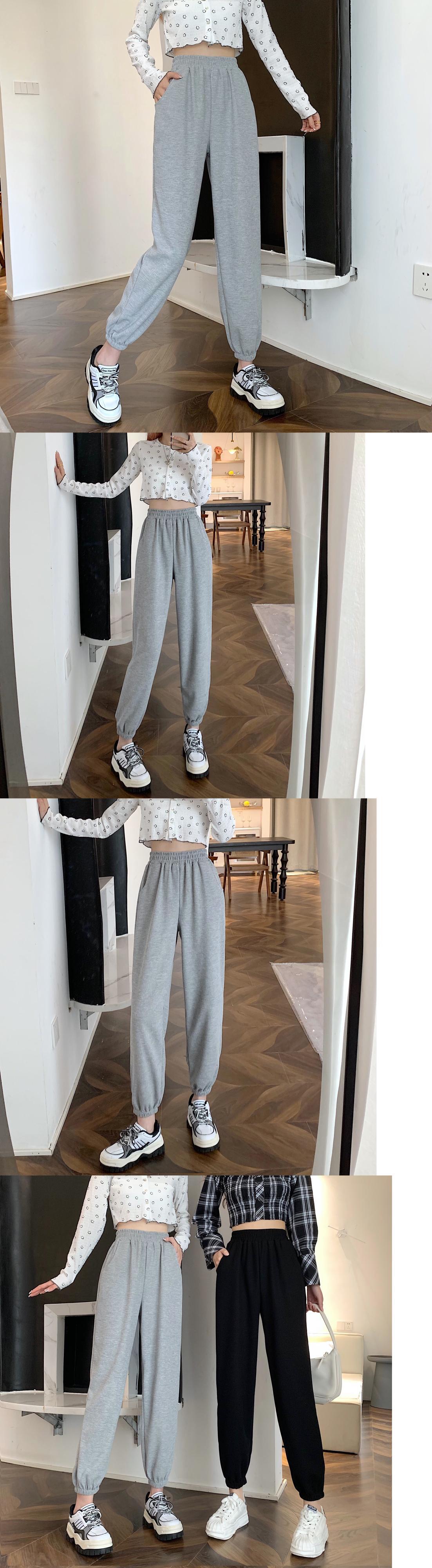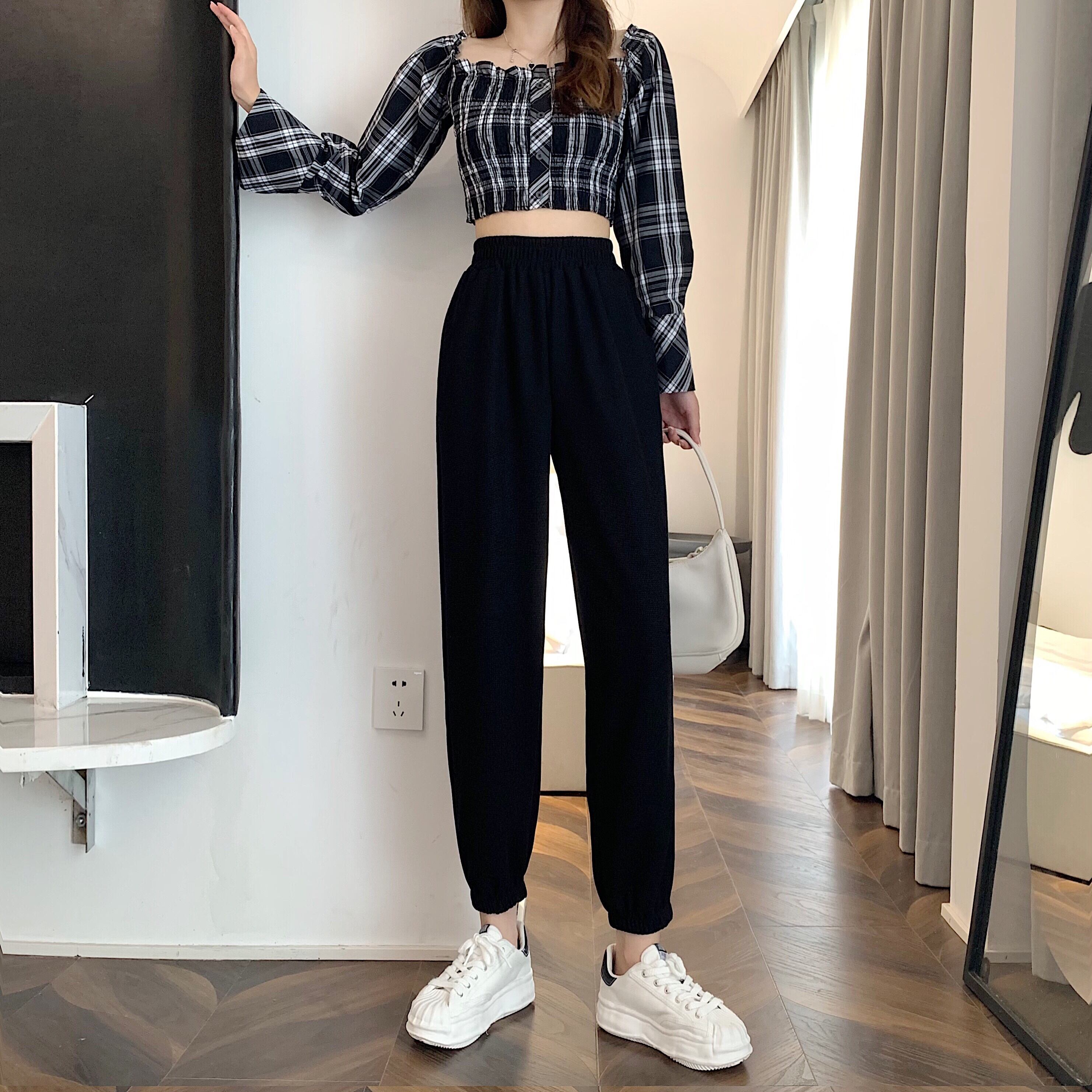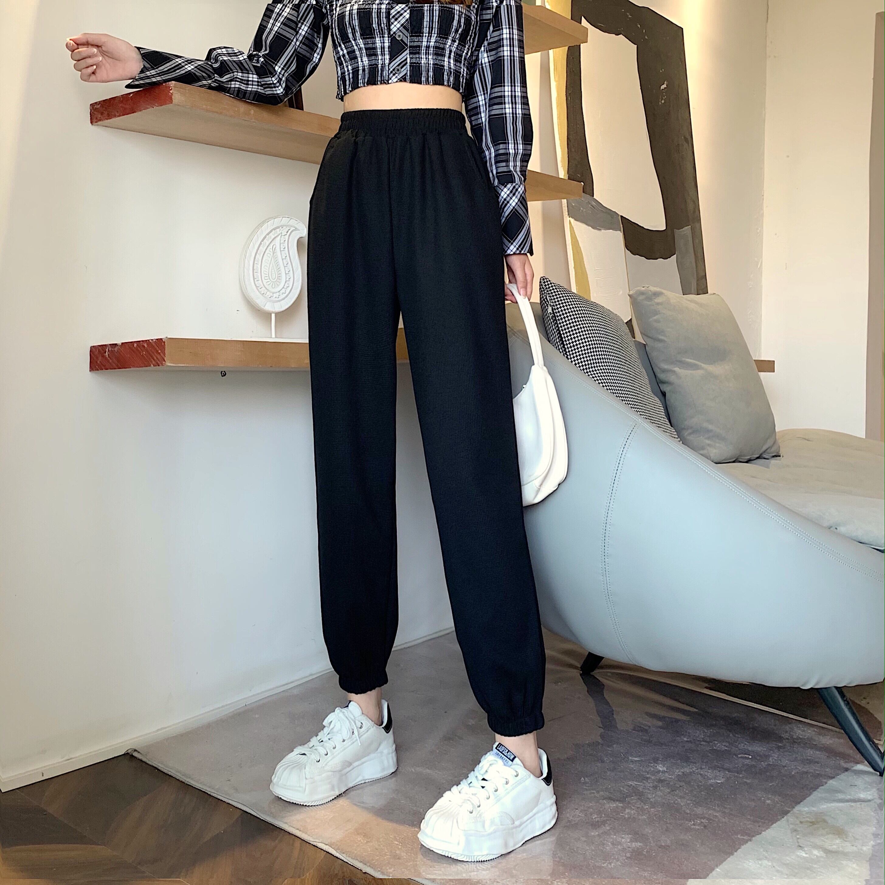 ブラックカジュアルパンツ スプリングオータムルーズハイウェスト 春物 秋物 スーパーモール65895202219