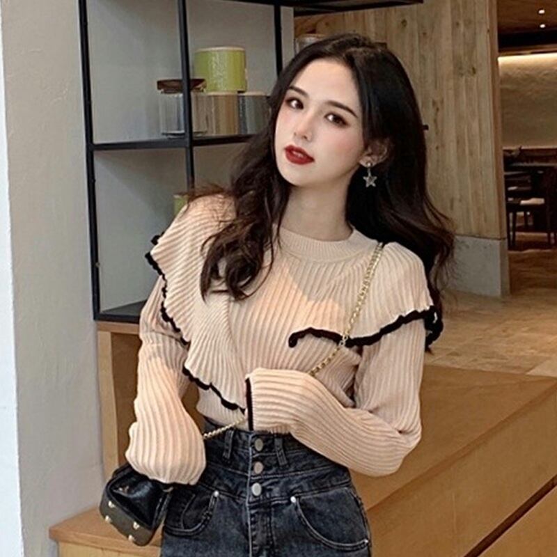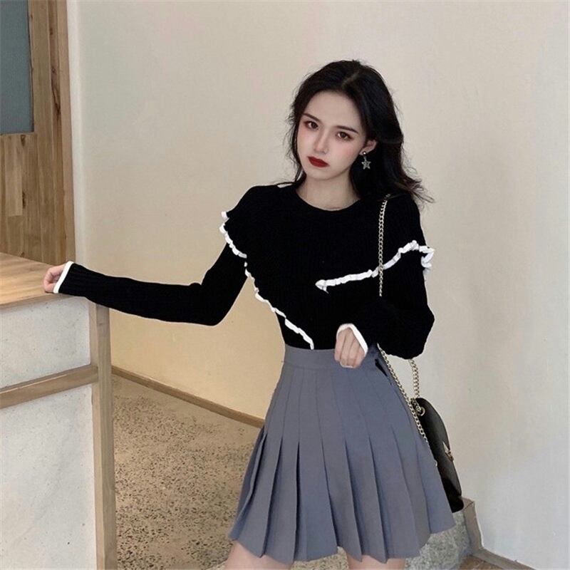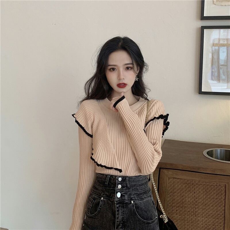 ブラックセーター スプリングオータムシャツ スリムトップス 春物 秋物 スーパーモール2090653290