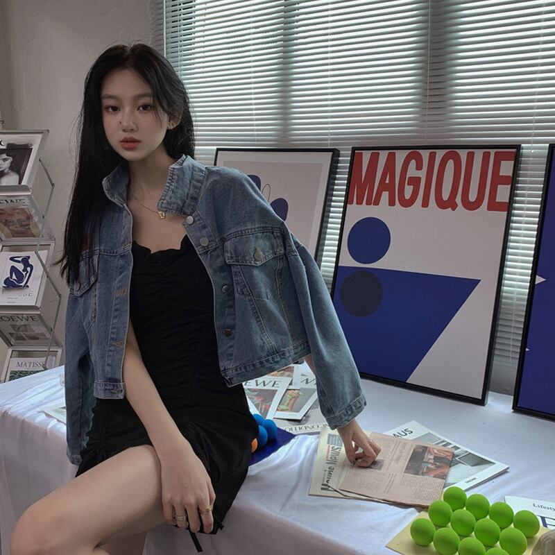 スタンダードブルージャケット スプリングオータムルーズショートトップス レトロ ストリート 春物 秋物 スーパーモール52329618469
