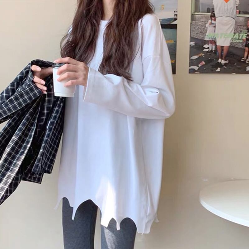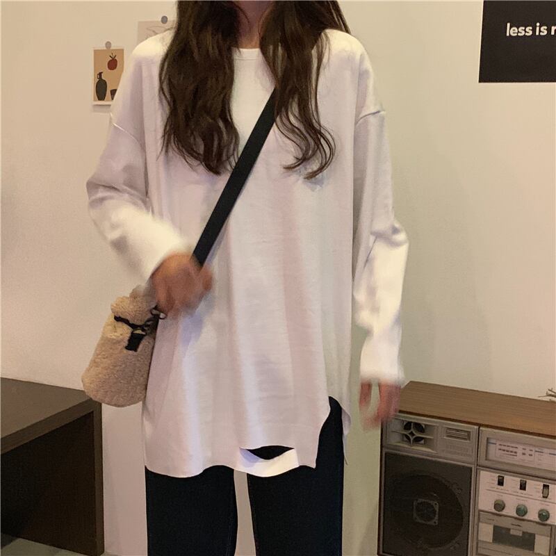 ホワイトTシャツ シャツ スプリングオータムルーズトップス ロング 春物 秋物 スーパーモール28736272058