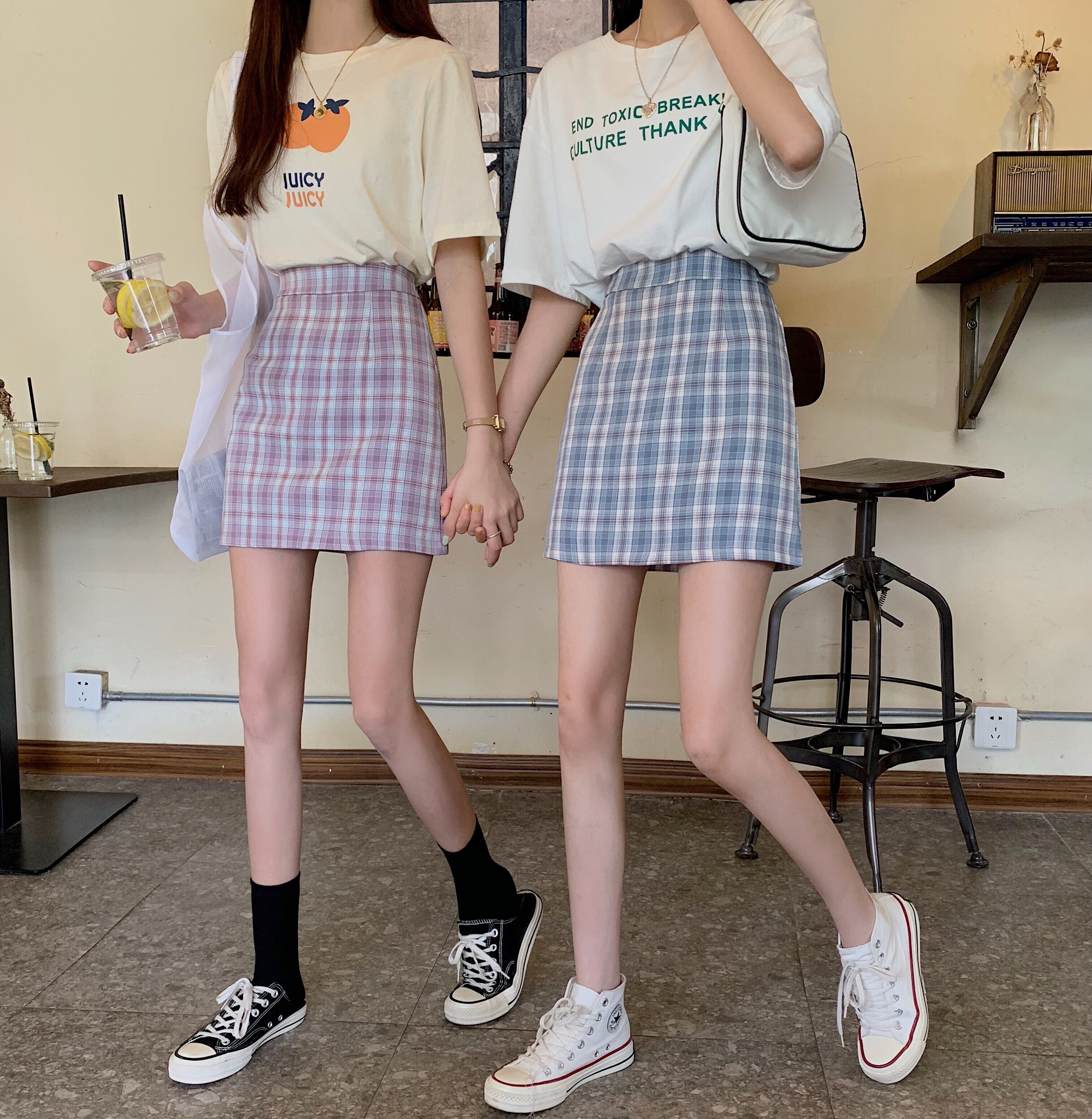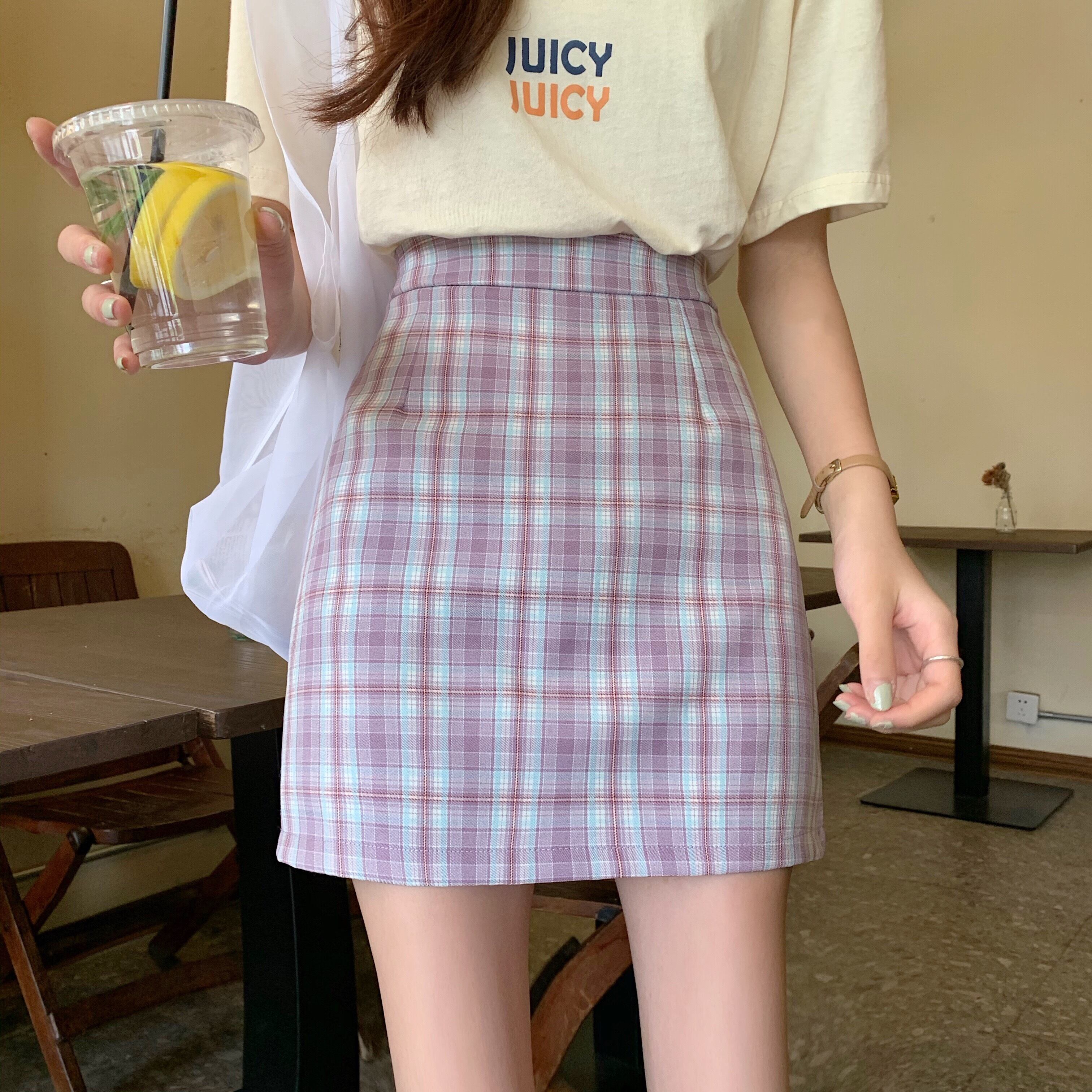 サマースカート 格子柄薄手ハイウェストウェストAライン 夏物 スーパーモール92334003498