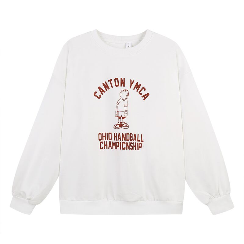 ホワイトラウンドネックセーター ルーズスプリングオータムスタイルトップス 春物 秋物 Oネック スーパーモール89349877158