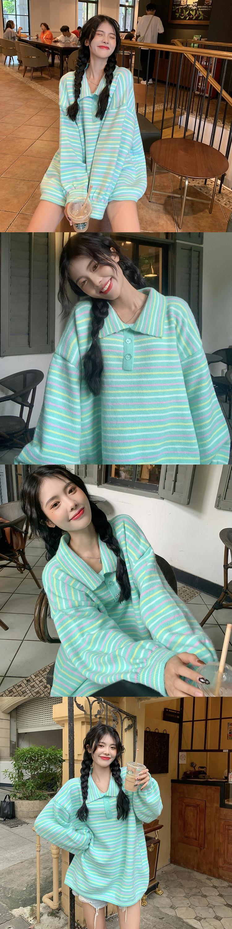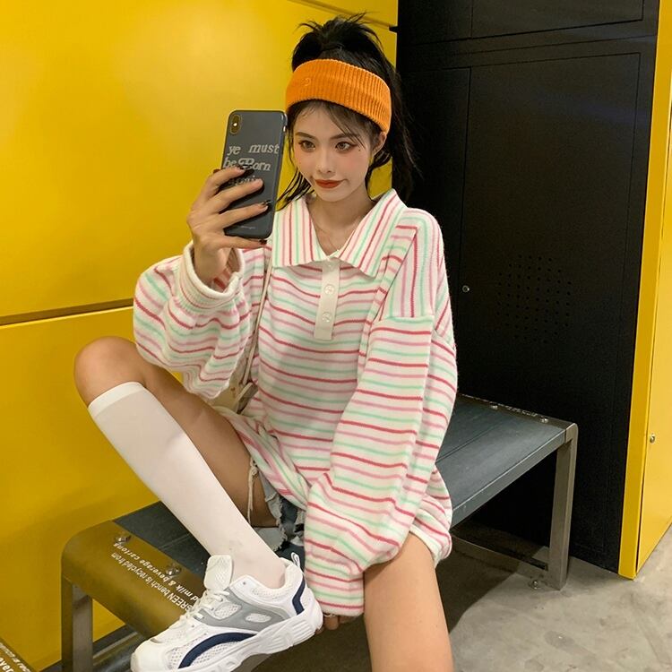 ストライプセーター スプリングオータムルーズカラープルオーバー 春物 秋物 スーパーモール99013517212