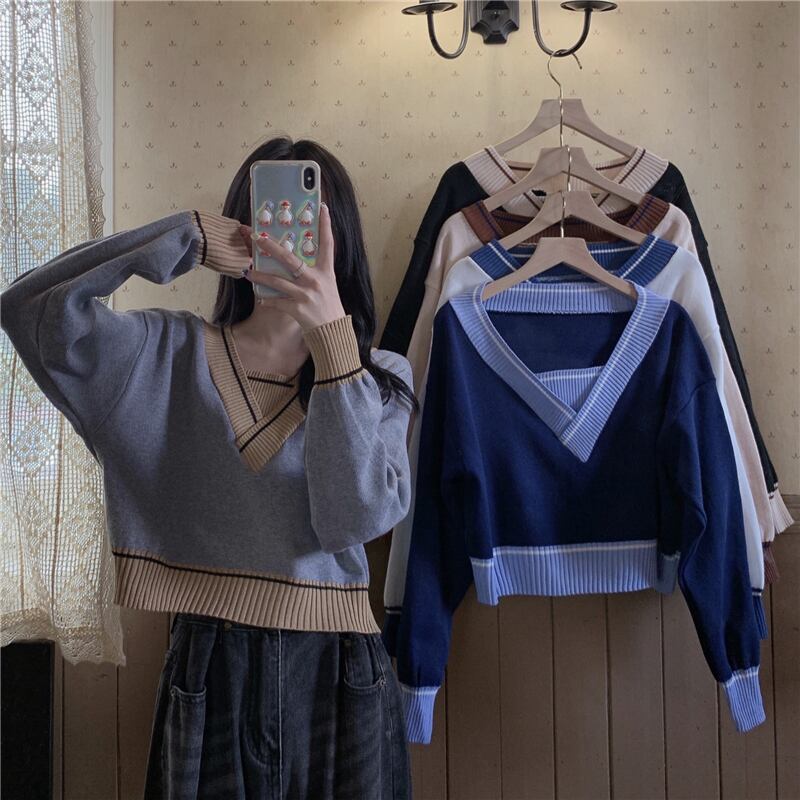 ショートセーター スプリングオータムルーズスタンダードニット レトロ 春物 秋物 スーパーモール8688316783