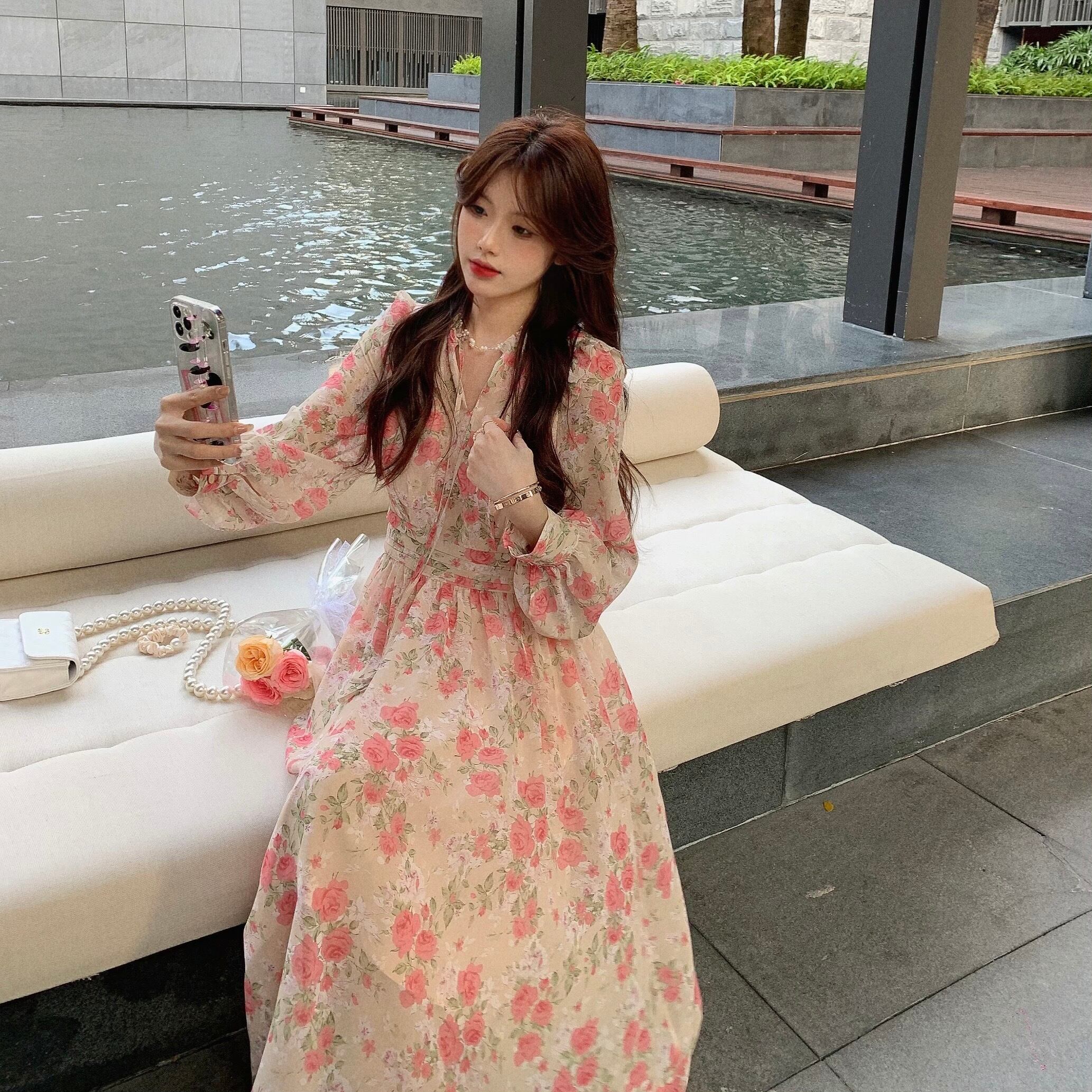フローラルスカート スプリングオータムドレス ロング 春物 秋物 花柄 スーパーモール9817804546