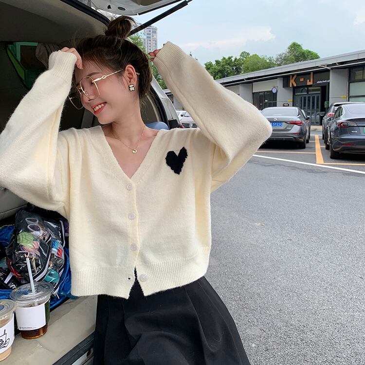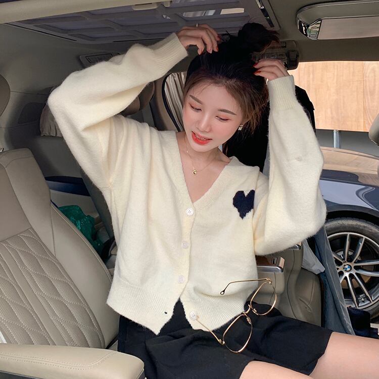 ホワイトセーター コート スプリングオータムスタンダードVネックニットカーディガン レトロ 春物 秋物 スーパーモール22993461001