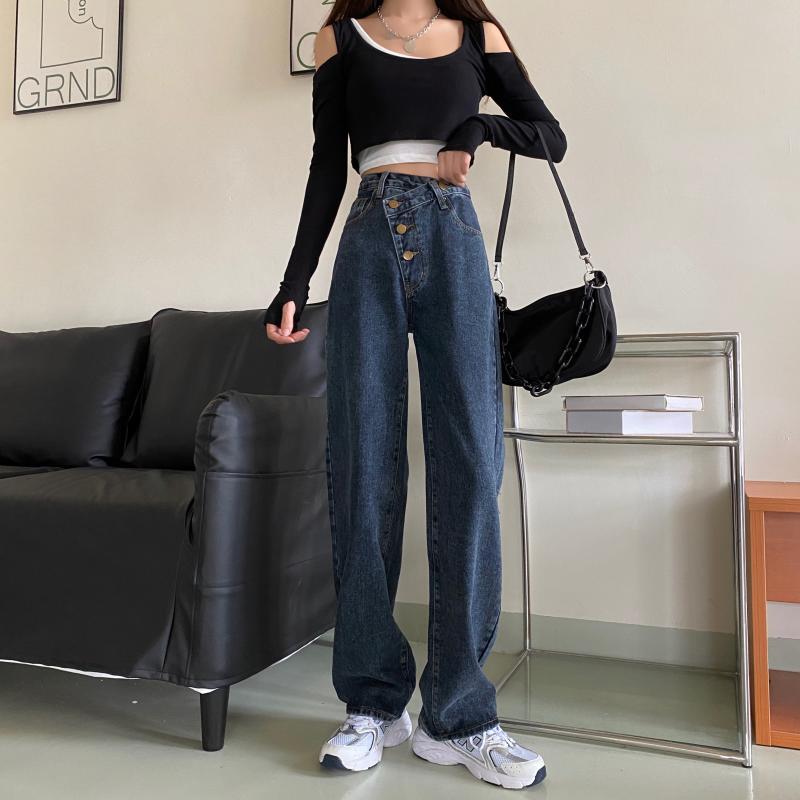 ウェストワイドレッグジーンズ スプリングオータムスタイルルーズパンツ 春物 秋物 ワイドパンツ スーパーモール76819149768
