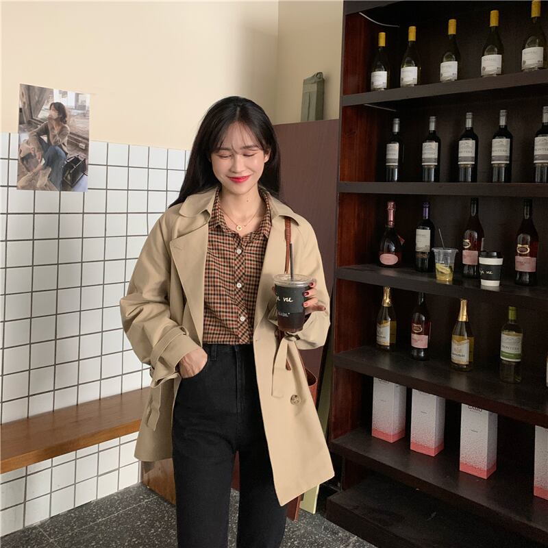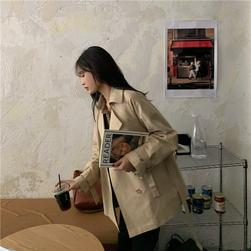 カーキスプリングオータムスタイルダブルブレストジャケット ストリート 春物 秋物 スーパーモール9600783109