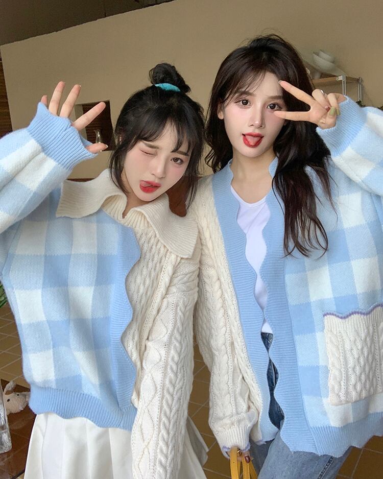 格子柄セーター コート スプリングオータムウィンタースタイルスタンダードニットカーディガン レトロ 春物 秋物 冬物 スーパーモール29650761551